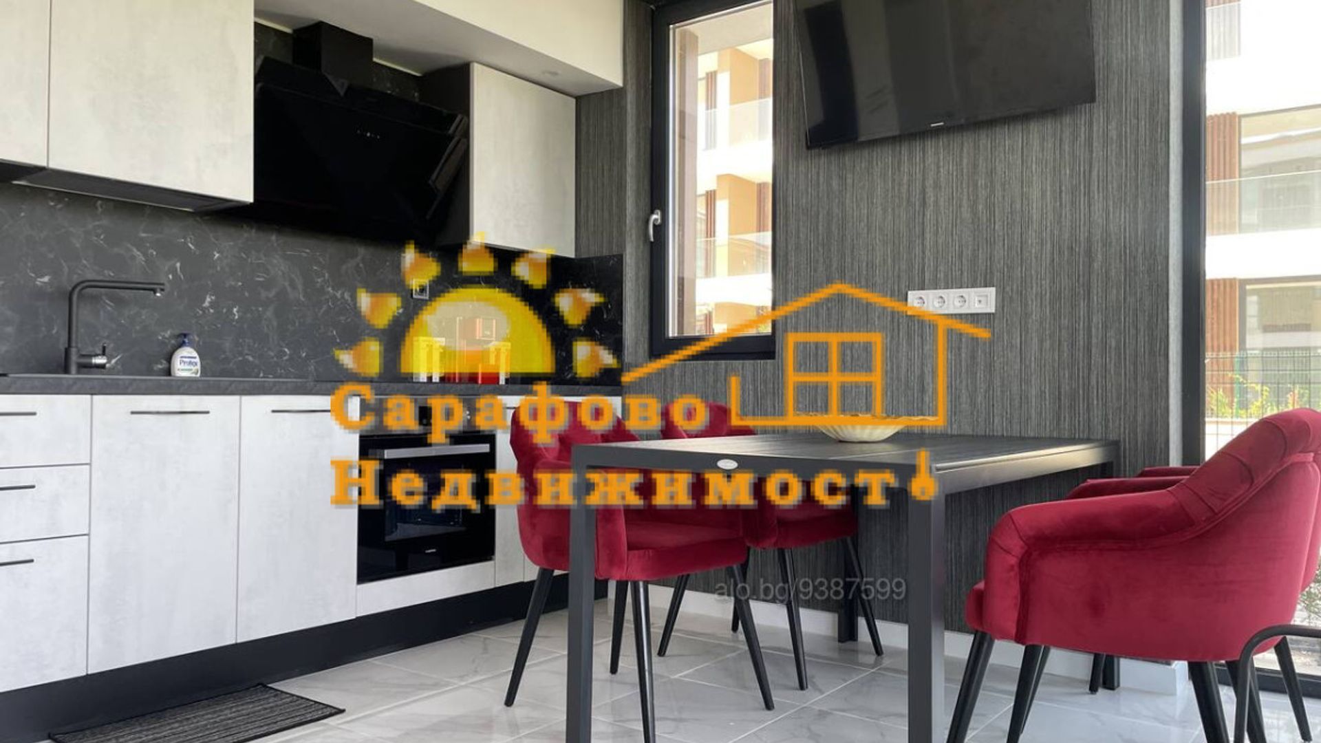 РАБОТИМ с колеги БРОКЕРИ и АГЕНЦИИ на недвижими имоти тази оферта. КОД на обявата 002058 Моля обадете се на посочения телефон и цитирайте кода на обявата за да проверим, дали имота е все още актуален! Всички имоти в Сарафово на едно място може да видите на сайта: www.ImotiSarafovo.com Агенция № 1 за Сарафово - 12 години опит Агенцията работи по изискванията на БДС EN 15733 Описание на имота: Дава се под наем дългосрочно луксозно обзаведен апартамент на първа линия ПЛАЖ. Със собствено ЛИЧНО ПАРКО МЯСТО. Апартаментът се намира в луксозен комплекс с ограничен достъп. Има електронен достъп до апартамента, СОД и камера. Гарантираме лукс, уют, чистота, тишина, лесен достъп до плажа и всички удобства с още допълнителни ЕКСТРИ. Ще се погрижим за всичко, за да може да разчитате на това да се наслаждавате на всичко наоколо. Има луксозна спалня вариант Куин със специален матрак за комфорт и здрав сън. Напълно оборудваната кухня в Италиански класически стил ще ви даде пълен комфорт. В апартаментът има пералня, ютия и всички удобства. Климатикът е енергоспестяващ.