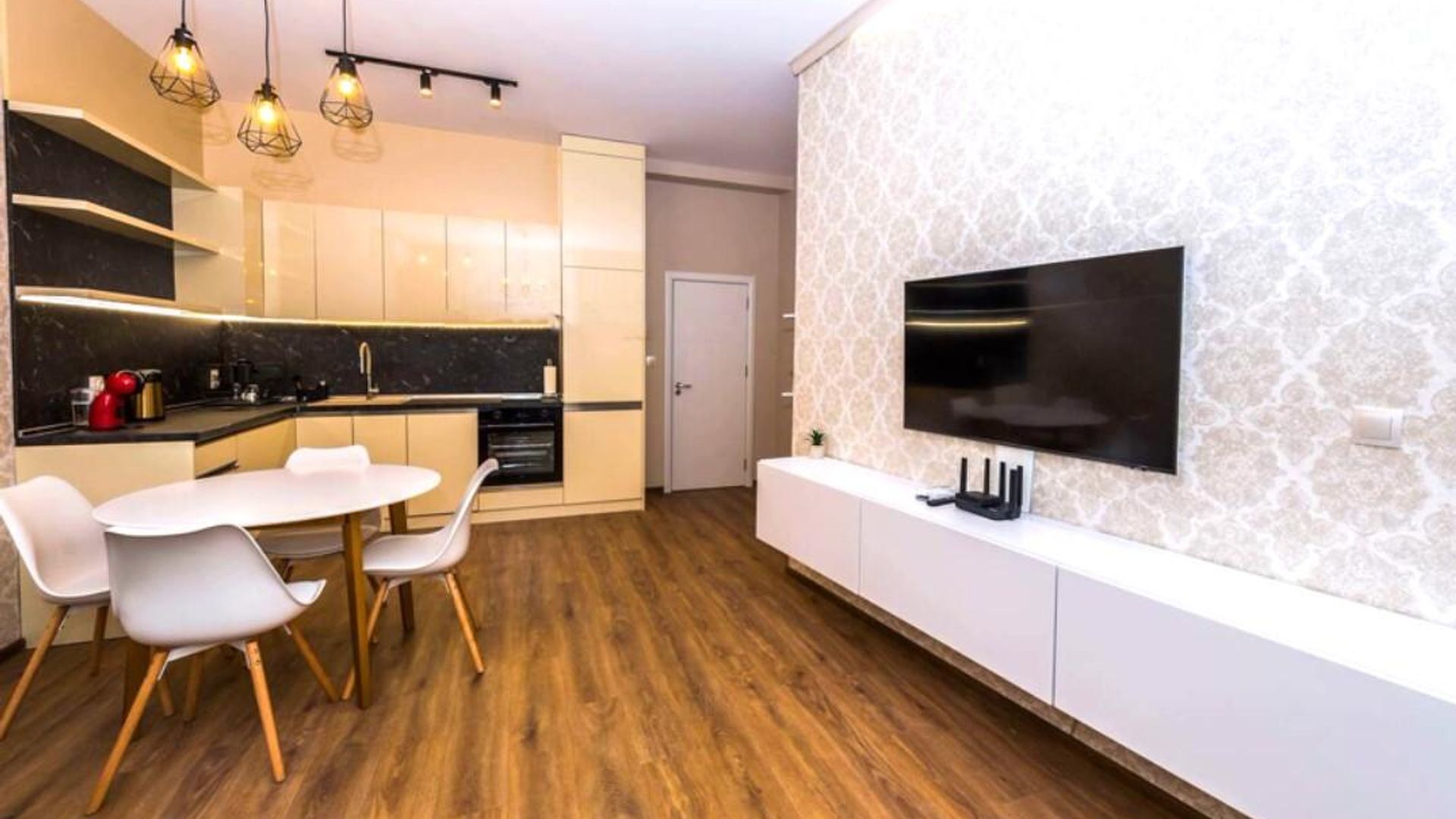 <br/>Жилището предлага модерно обзавеждане, с всичко необходимо за вашият комфорт, включен интернет и телевизия в цената, както и частен гараж .