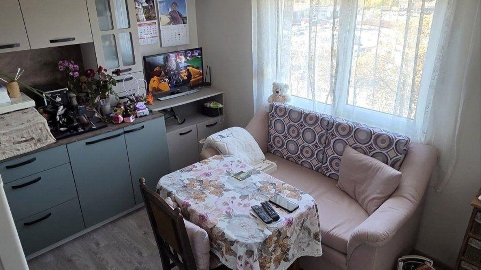 <br/>Имота разполага с жилищна площ 72 кв.м, разгърната в следното разпределение: входно антре, хол , кухня, спалня, баня с тоалетна и тераса.