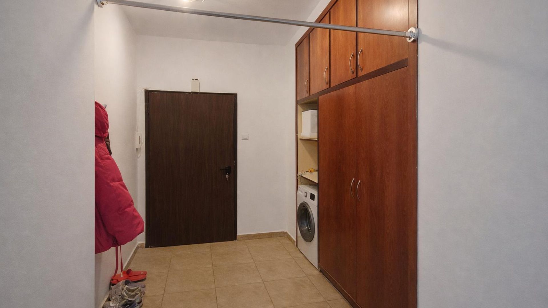<br/>Имотът е ситуиран на 5-ти жилищен етаж от 8 етажна сграда и разполага с площ 68 кв.м, разгърната в следното разпределение: Коридор с ниша за вграден гардероб и пералня, всекидневна, спалня, кухня, баня с тоалетна, 2 тераси - затворени.