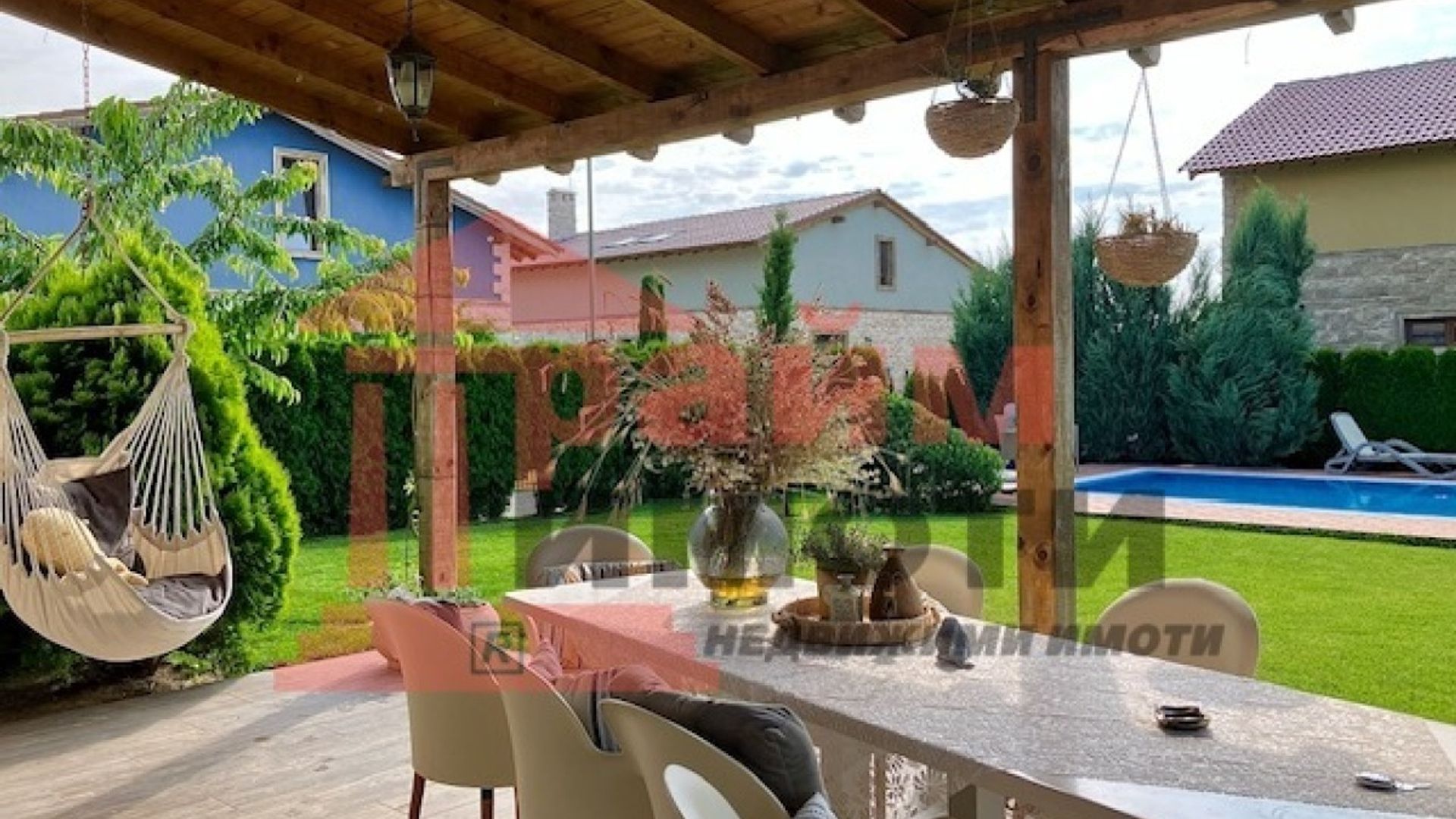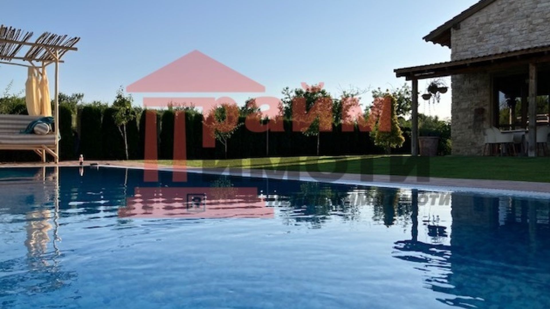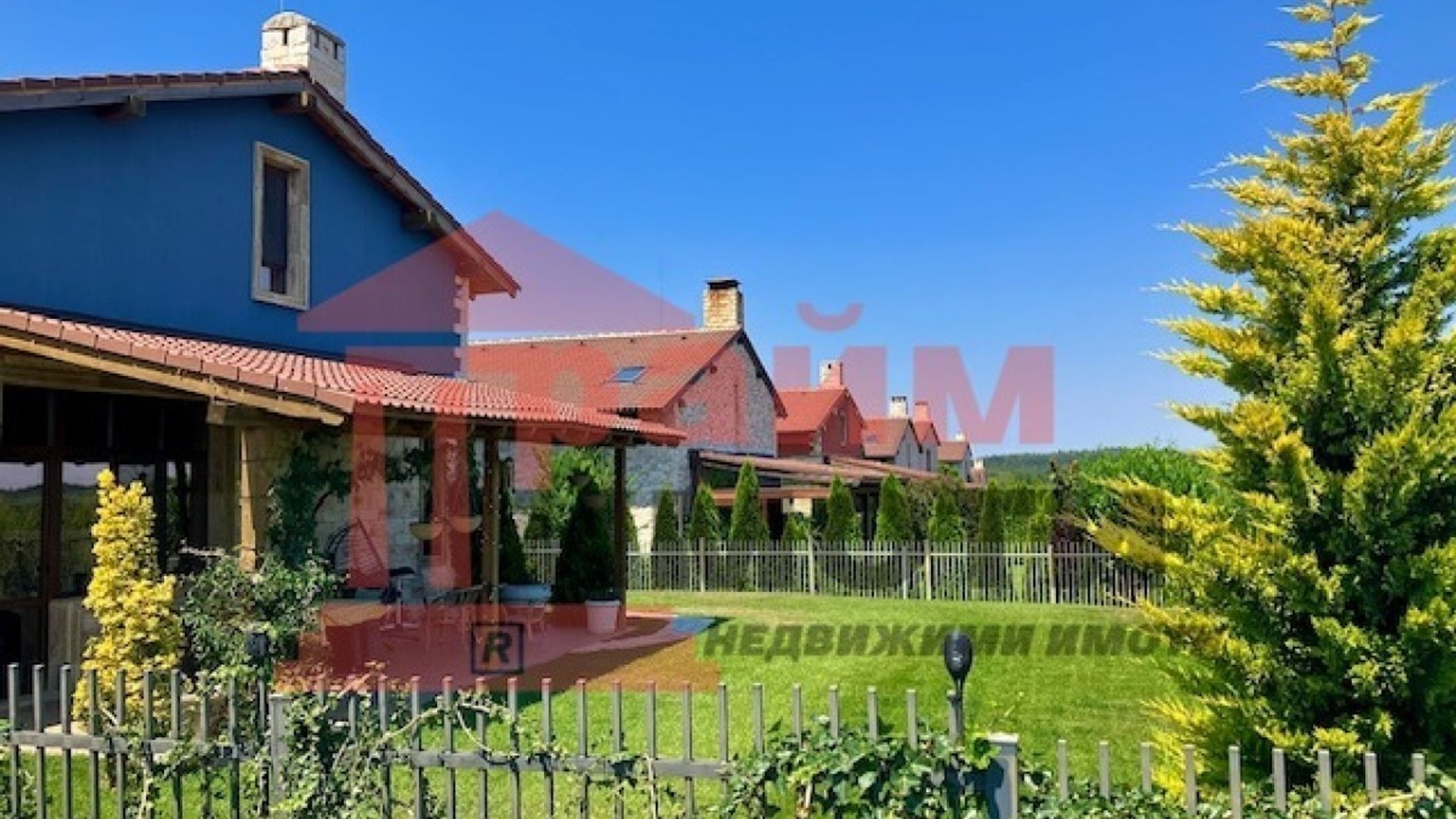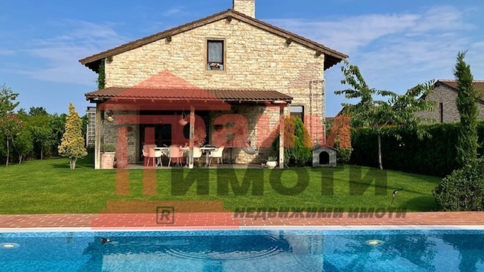 Прайм имоти продава самостоятелна двуетажна къща със собствен басейн и двоен гараж, разположена на около 11 км от центъра на Варна в живописна местност застроена с нови къщи, изградена собствена инфраструктура, тихо и красиво място. РЗП 330 кв.м, парцел 675 кв.м, въведена в експлоатация 2019 г. цена 450 000 € с възможност за частично разсрочено заплащане. Напълно борудвана и обзаведена къща с пет големи спални - 25,25,45,45,16 кв.м и с пет бани със санитарни възли, дневна с трапезария и кухненска част с излаз на веранда, складово помещение – килер, гараж за два автомобила и открит паркинг за още три, както и с възможност за изграждане на зарядна станция. Дварът е самостоятелен с изграден семеен девет метров басейн. Мястото е известно сред местните като тосканският квартал, за който е изграден собствен трафопост, водопреносна мрежа, интернет до 1000 Мб и улична мрежа. Тихо, спокойно и сигурно място в близост до природни резервати и красиви плажове, на 10 минути от пешеходния център на Варна. Един от красивите запазили се девствени райони на българското Черноморие с най-добрата роза на ветровете и чист, здравословен въздух. Място за релакс след работния ден, което е едновременно близо и далеч от големия град.
