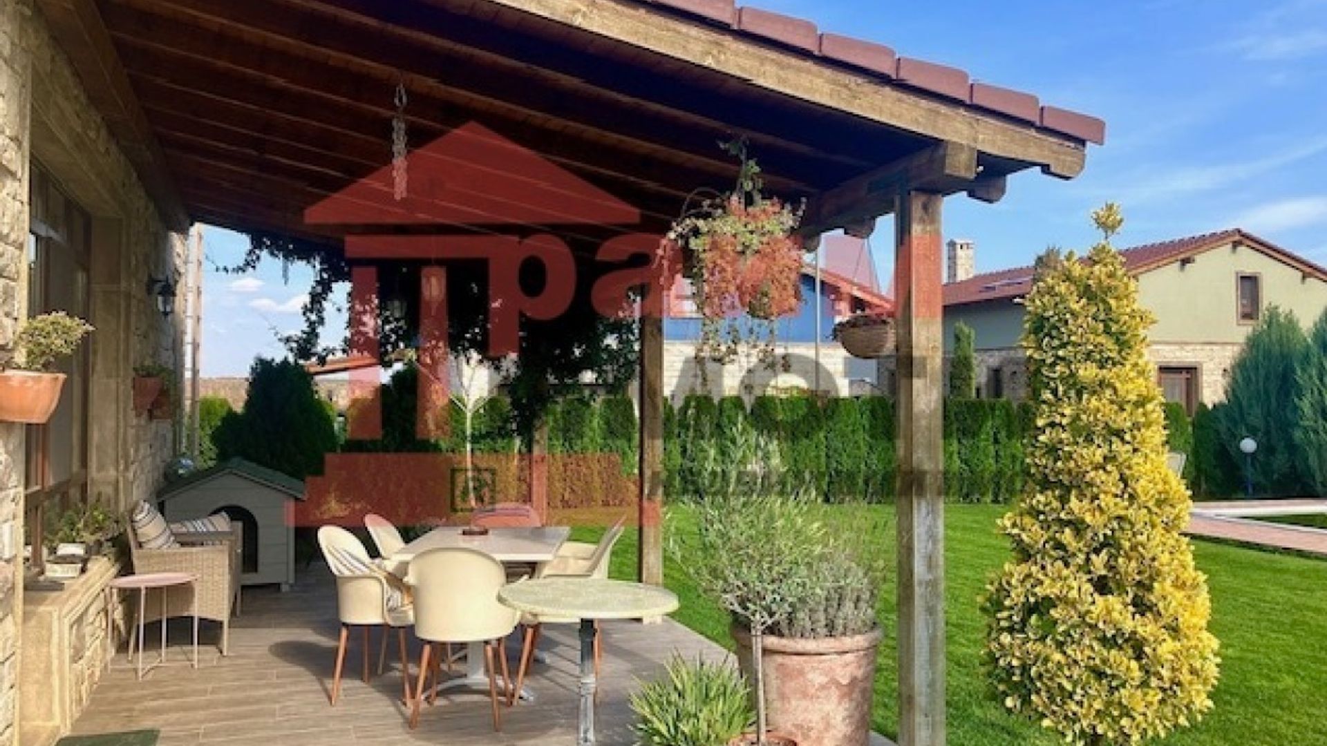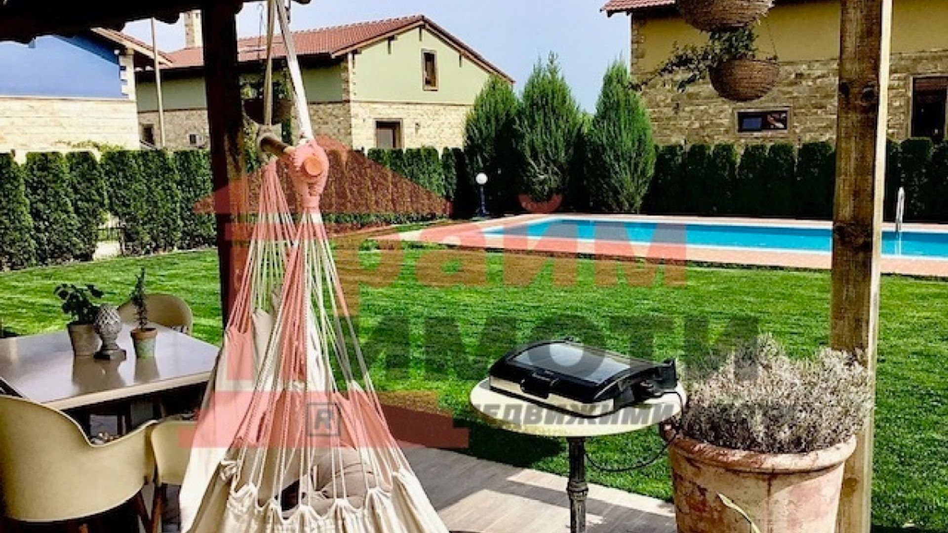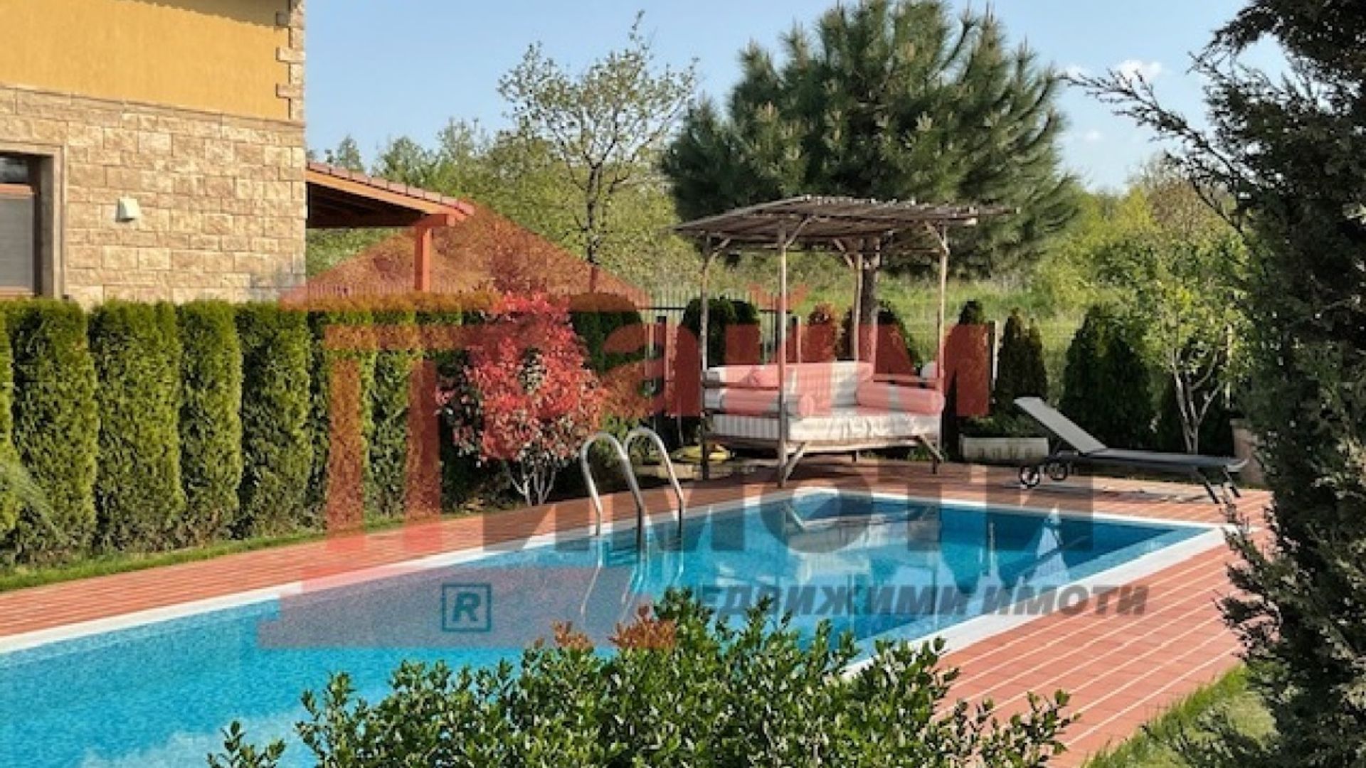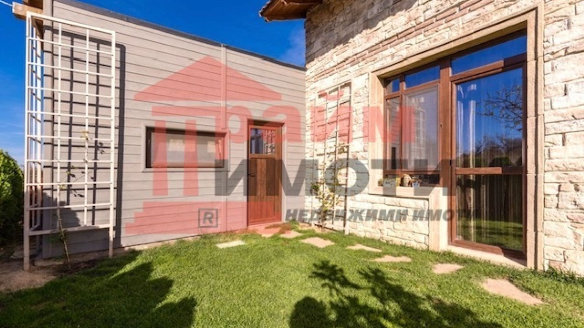 Прайм имоти продава самостоятелна двуетажна къща със собствен басейн и двоен гараж, разположена на около 11 км от центъра на Варна в живописна местност застроена с нови къщи, изградена собствена инфраструктура, тихо и красиво място. РЗП 330 кв.м, парцел 675 кв.м, въведена в експлоатация 2019 г. цена 450 000 € с възможност за частично разсрочено заплащане. Напълно борудвана и обзаведена къща с пет големи спални - 25,25,45,45,16 кв.м и с пет бани със санитарни възли, дневна с трапезария и кухненска част с излаз на веранда, складово помещение – килер, гараж за два автомобила и открит паркинг за още три, както и с възможност за изграждане на зарядна станция. Дварът е самостоятелен с изграден семеен девет метров басейн. Мястото е известно сред местните като тосканският квартал, за който е изграден собствен трафопост, водопреносна мрежа, интернет до 1000 Мб и улична мрежа. Тихо, спокойно и сигурно място в близост до природни резервати и красиви плажове, на 10 минути от пешеходния център на Варна. Един от красивите запазили се девствени райони на българското Черноморие с най-добрата роза на ветровете и чист, здравословен въздух. Място за релакс след работния ден, което е едновременно близо и далеч от големия град.