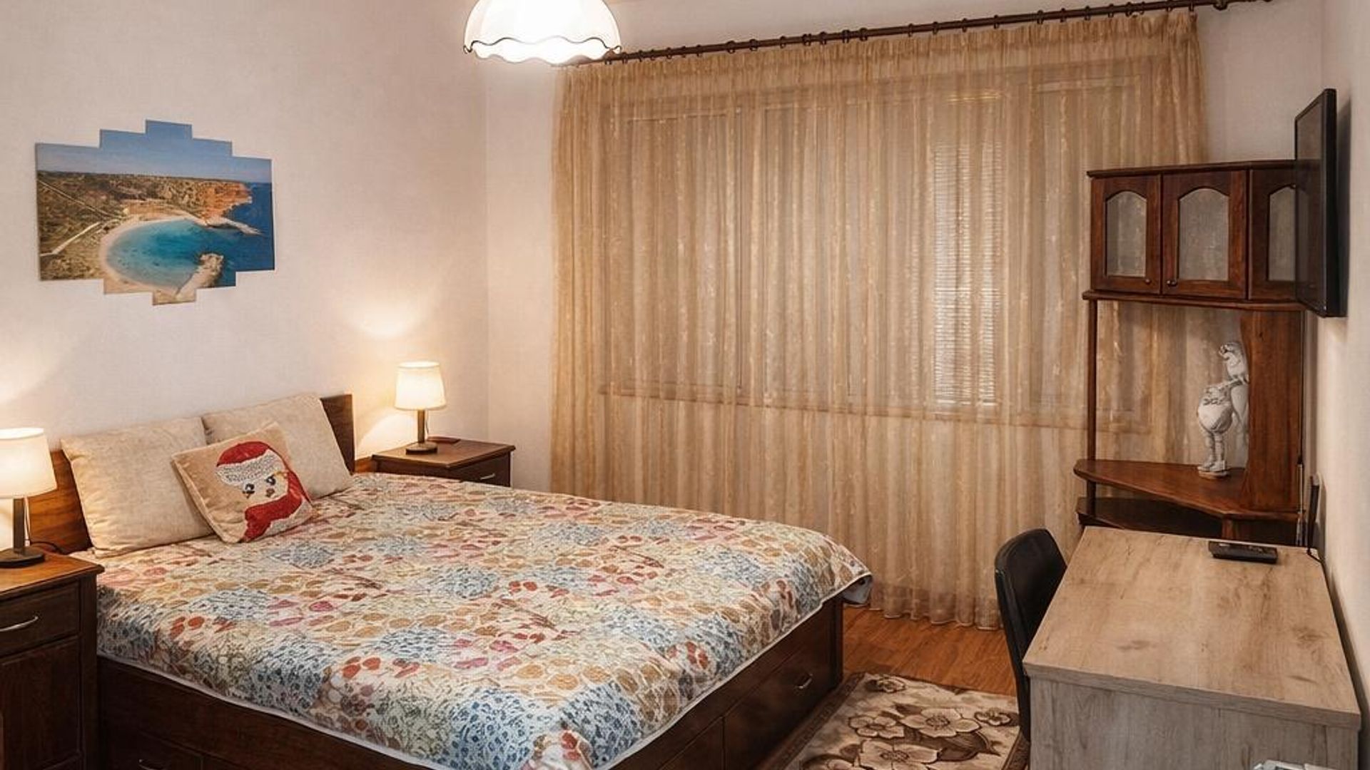 <br/>Етаж от къща с обща площ 69 кв.м, завършен в светли тонове и оборудван с практични мебели. Просторен хол с трапезария и кухненски бокс, създава удобна среда за ежедневни активности, а двете спални осигуряват личен кът. Паркомясто улеснява придвижването, а отоплението на ток поддържа топлина през цялата година.