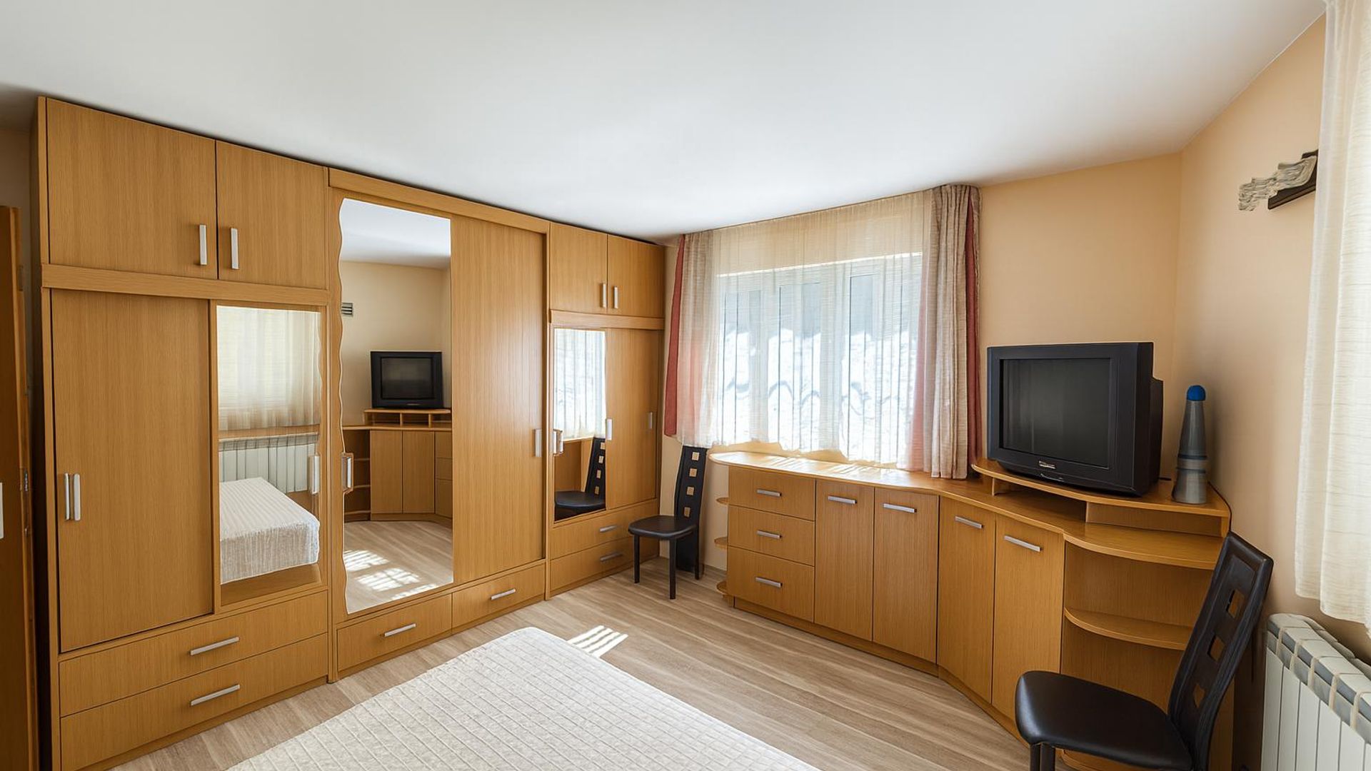 <br/>Просторен тристаен апартамент в Каменица 1, Пловдив с 80 кв.м. функционална кухня с всекидневна, голям коридор, две спални и баня с тоалетна. Изток и Юг изложение, отопление на ток и пълно обзавеждане. Стилно решение за комфортен престой с приятна атмосфера.