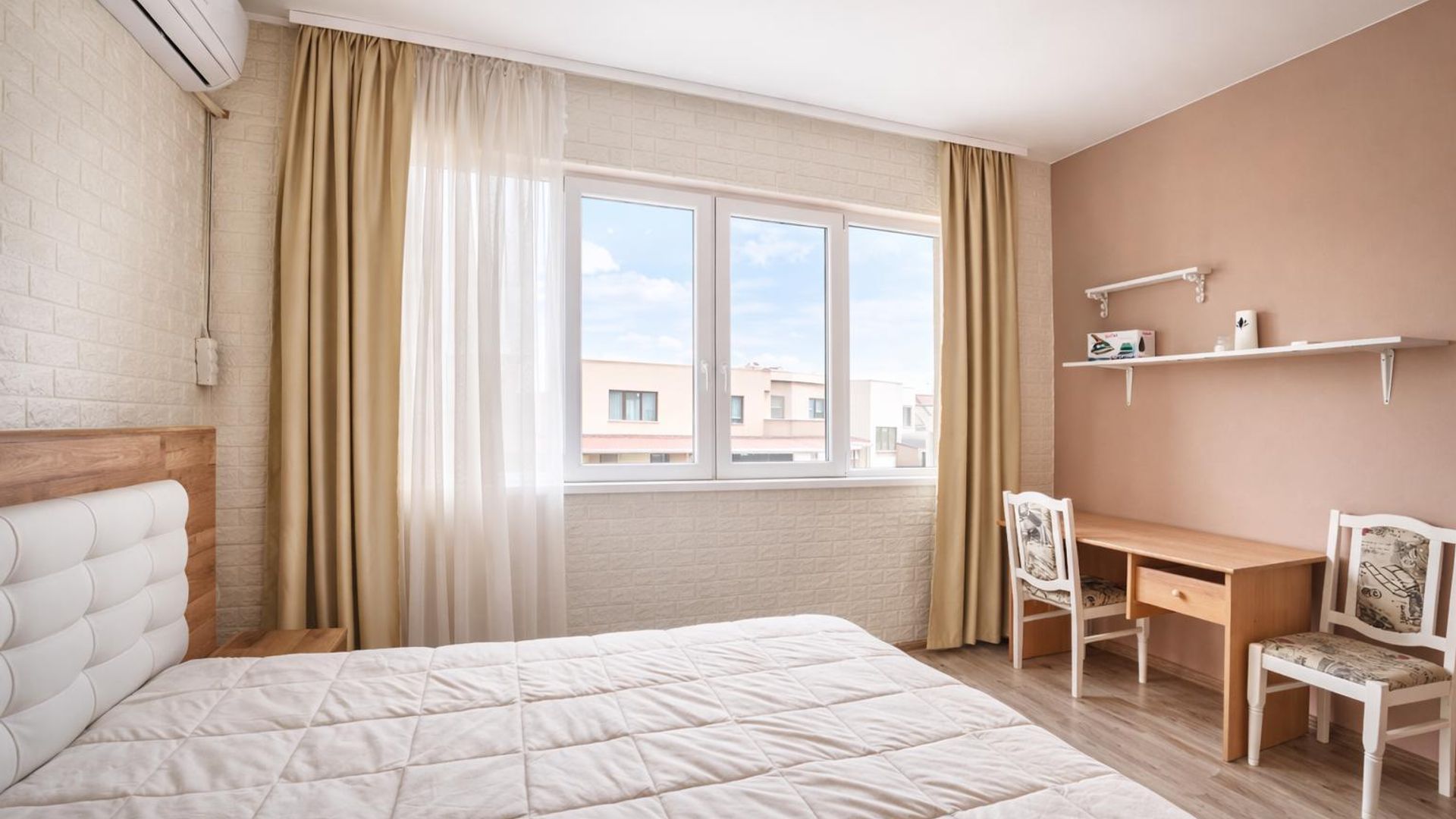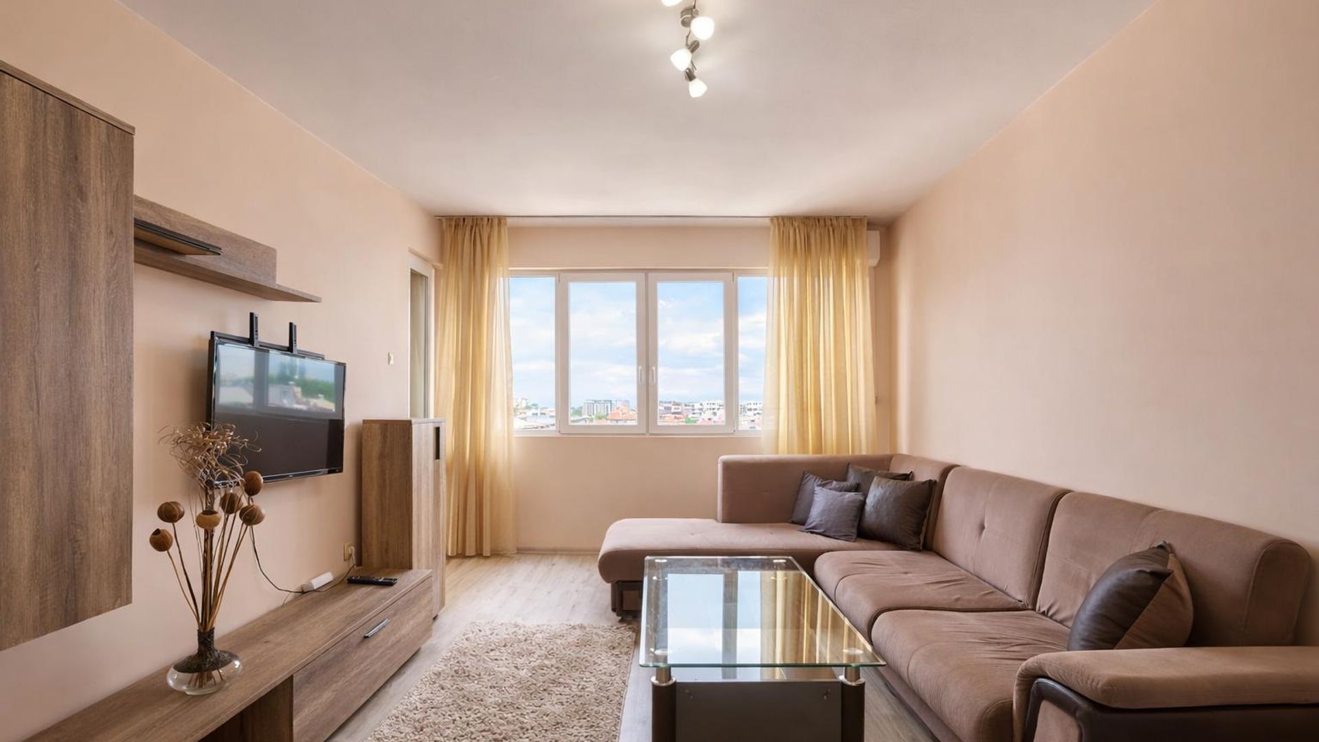 <br/>Просторен двустаен апартамент с функционално разпределение, включващ комфортен хол и две спални, както и баня с отделна тоалетна и просторна тераса. Обзаведен с модерни мебели и качествени елементи, със северно изложение, предоставя меко дневно осветление. Съчетава практичност и стил за максимален комфорт.