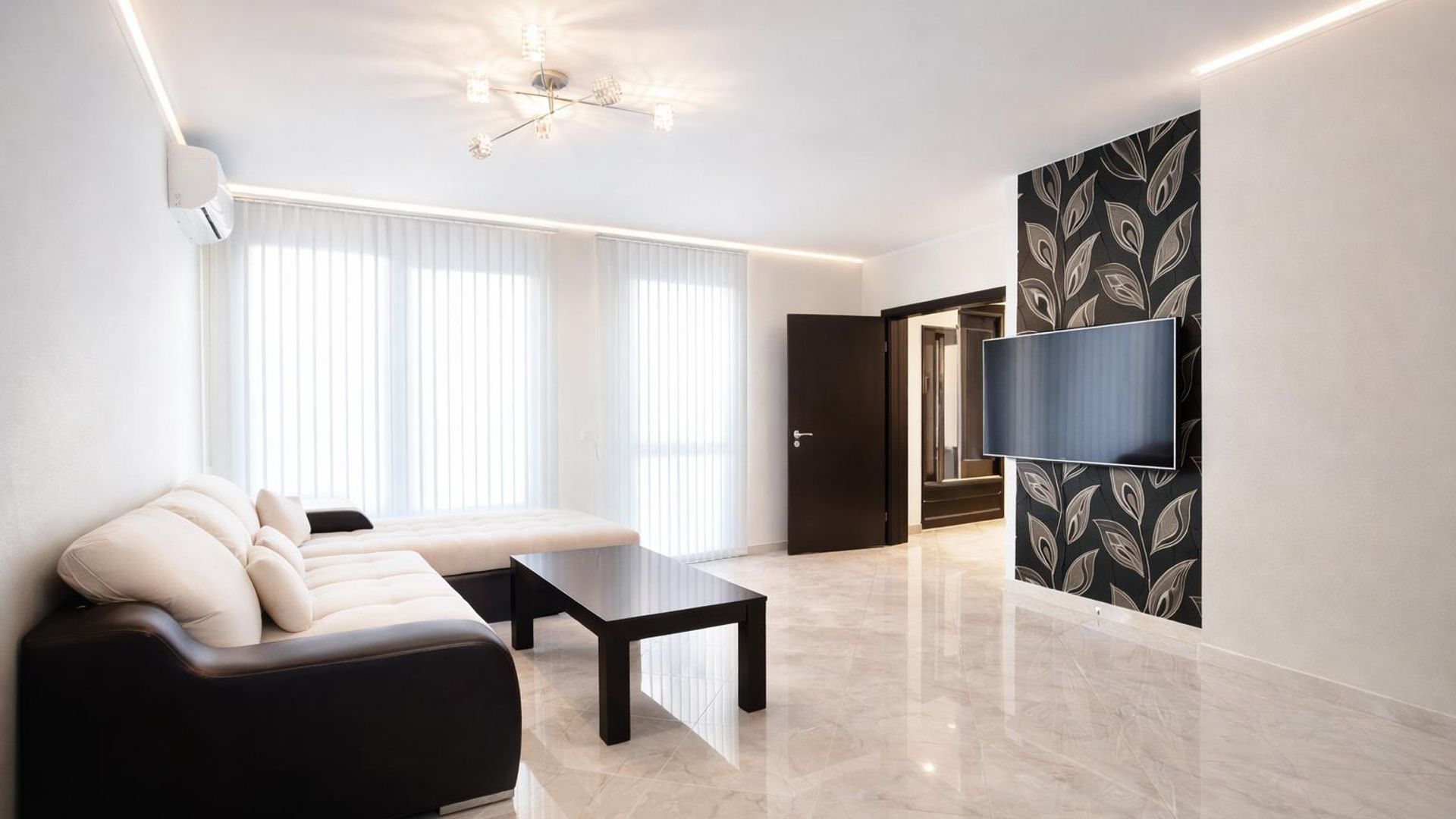 <br/>Имотът е ситуиран на 6-ти жилищен етаж и разполага с площ 75кв.м, разгърната в следното разпределение: входно антре, хол с трапезария и кухненски бокс, спалня, баня с тоалетна и тераса.