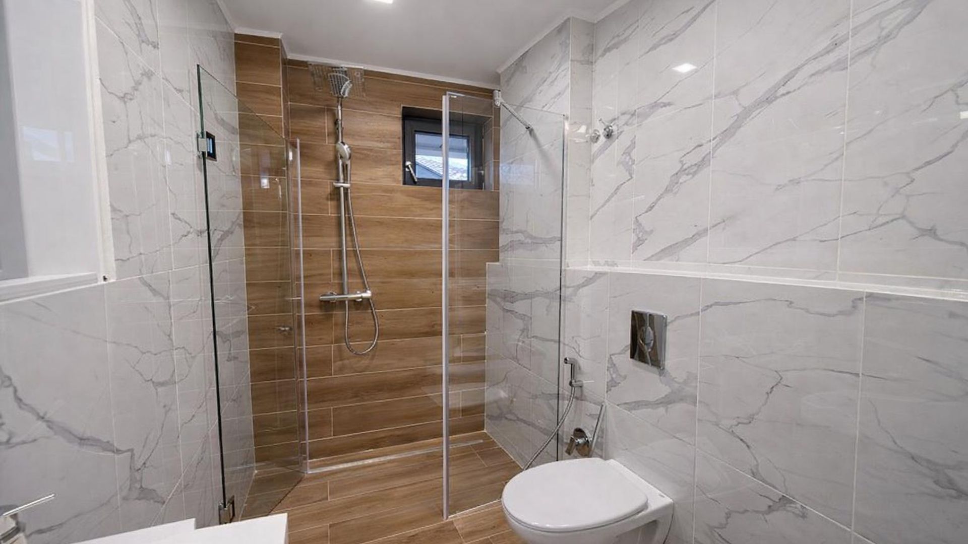 <br/>Имотът е ситуиран на 1-ви жилищен етаж и разполага с площ 80кв.м, разгърната в следното разпределение: входно антре, хол с кухненски бокс и трапезария, 2 спални, баня с тоалетна, перално помещение и тераса.