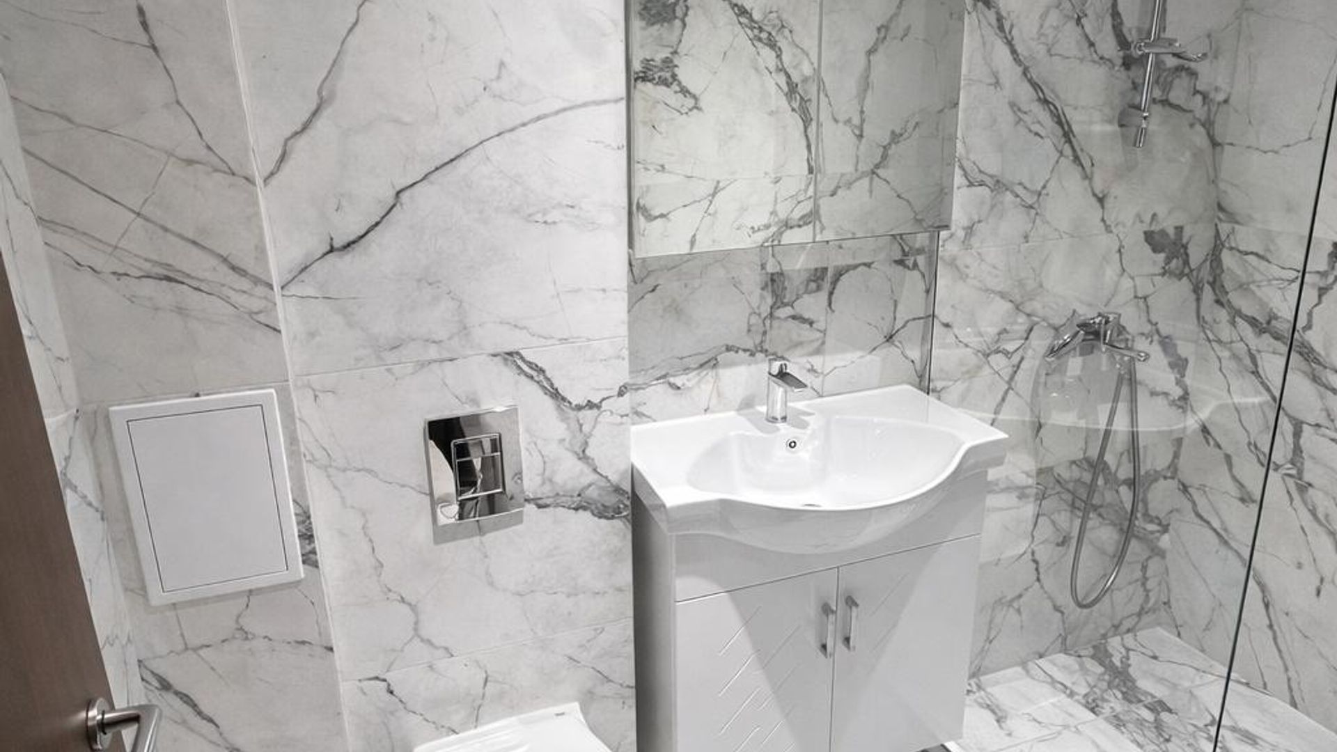 <br/>Имотът е ситуиран на 5-ти жилищен етаж в нова сграда и разполага с площ 54кв.м, разгърната в следното разпределение: входно антре, хол с кухненски бокс, спалня, баня с тоалетна и тераса.