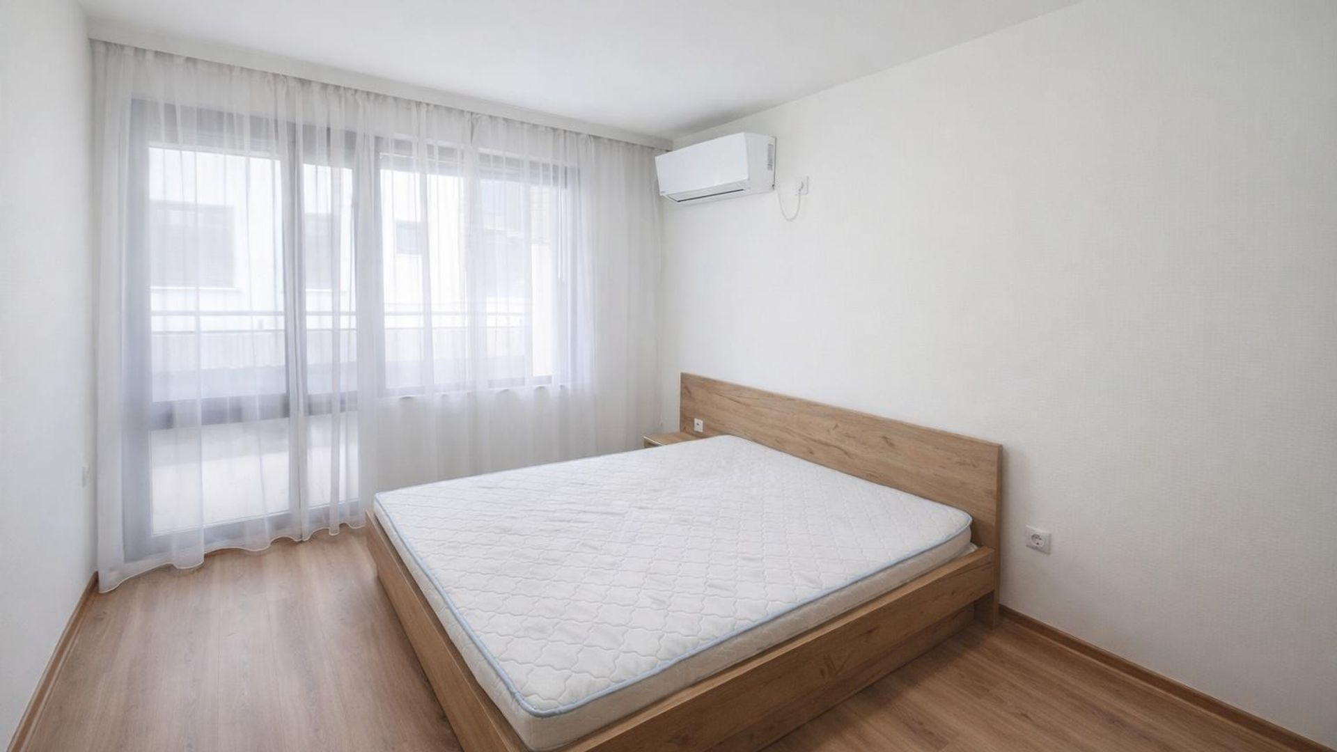 <br/>Имотът е ситуиран на 1-ви жилищен етаж и разполага с площ 70кв.м, разгърната в следното разпределение: входно антре, хол с кухненски бокс, спалня, баня с тоалетна и тераса.