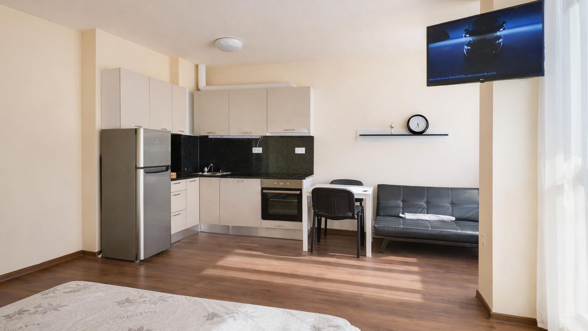 <br/>Жилището се предлага напълно обзаведено и оборудвано с всичко необходимо за едно домакинство.