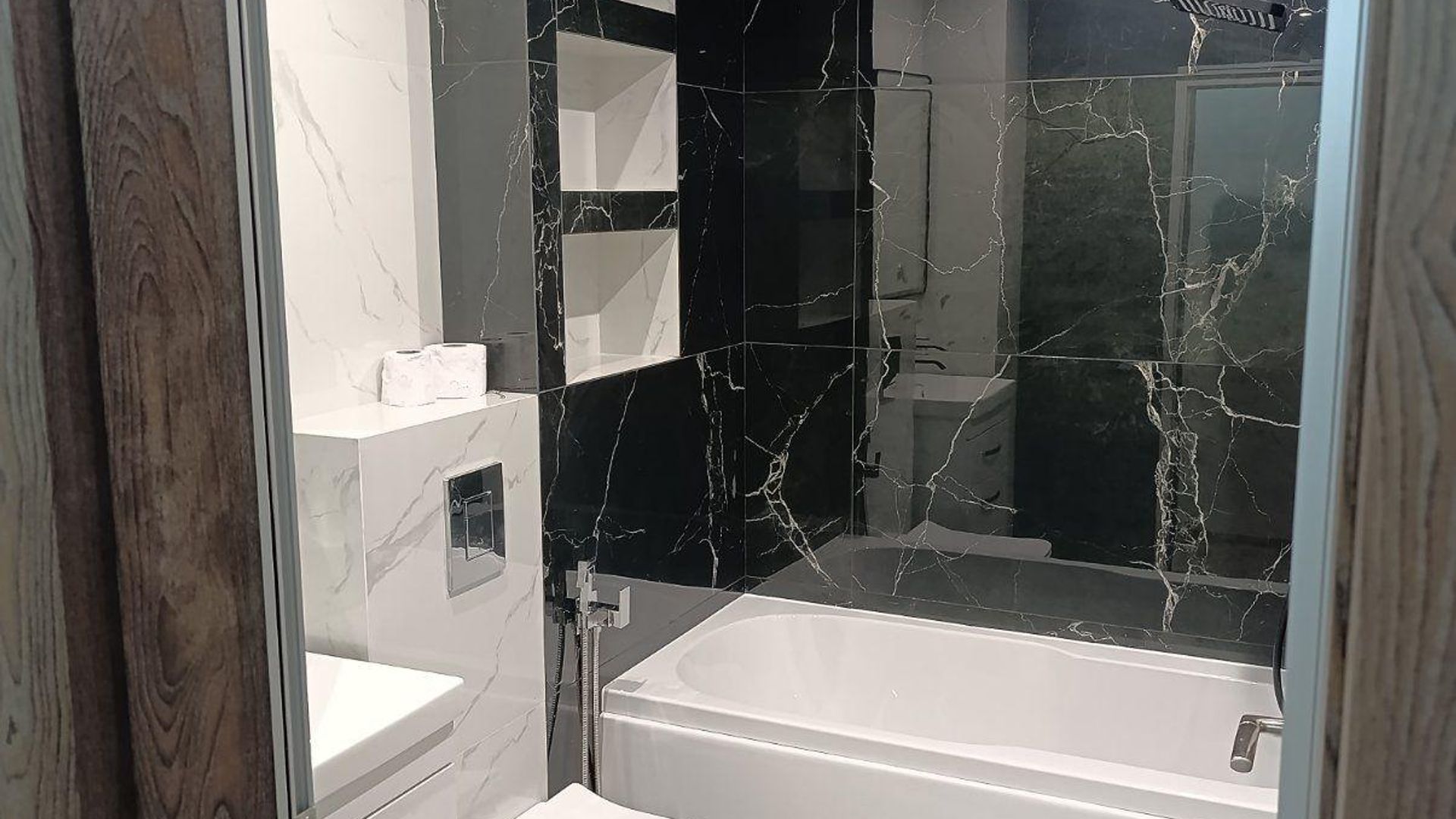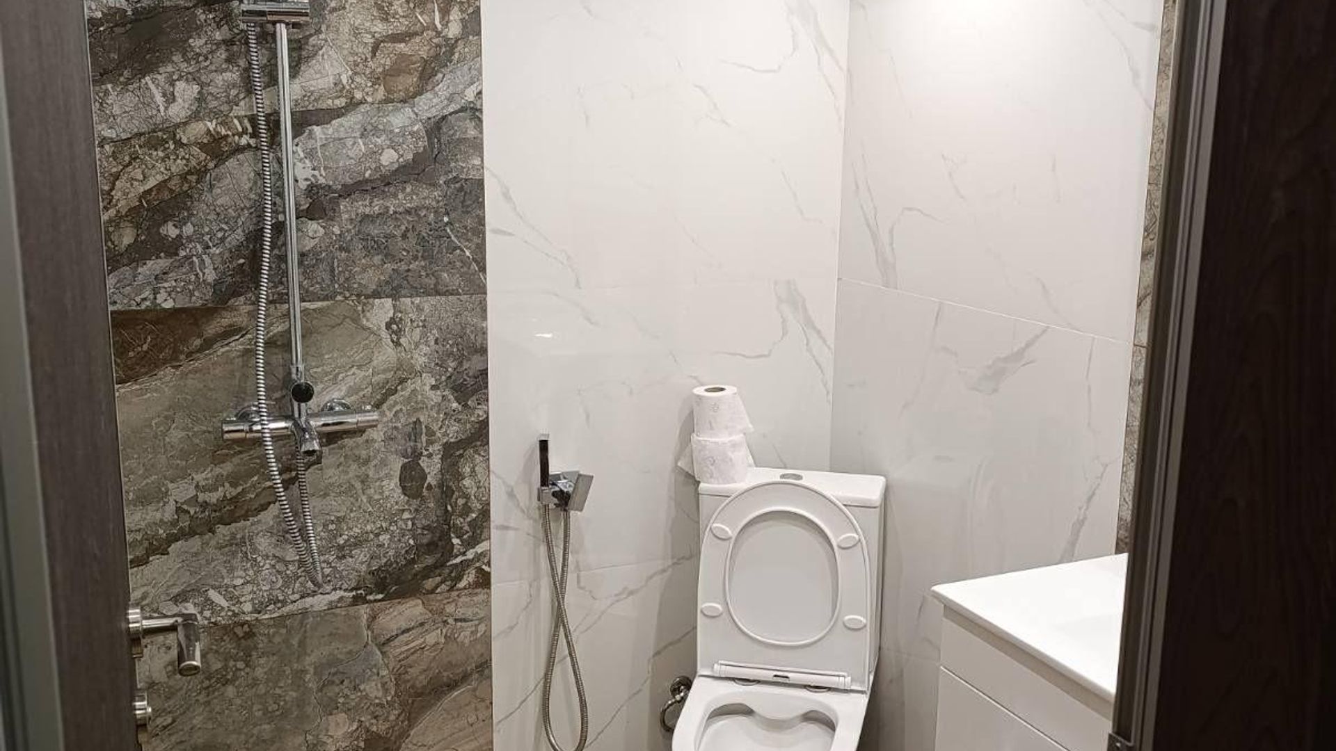 <br/>Имотът разполага с площ 50кв.м, разгърната в следното разпределение: входно антре, хол с кухненски бокс, три спални, две бани с тоалетна, самостоятелна тоалетна и тераса.