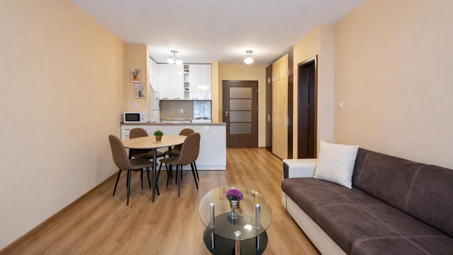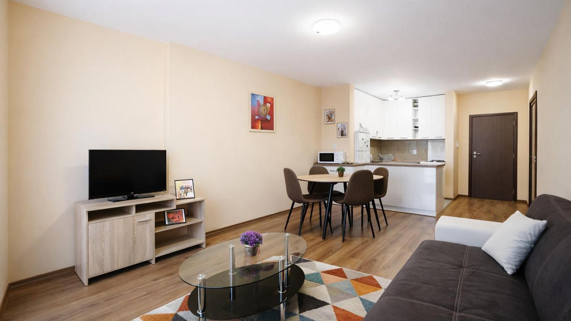 <br/>Жилището се предлага напълно обзаведено и оборудвано с всичко необходимо за едно домакинство.