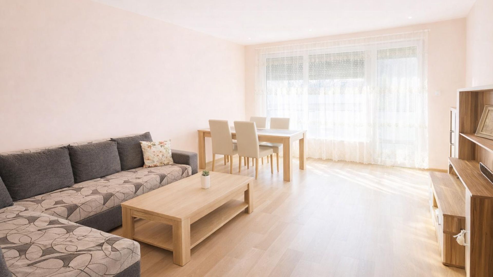 <br/>Светъл и просторен апартамент с две спални, оборудван с всички необходими удобства. Включва модерна кухня, комфортен хол с южна тераса и самостоятелна детска стая. Лесен достъп до градски транспорт и климатик осигуряват приятна атмосфера през цялата година.