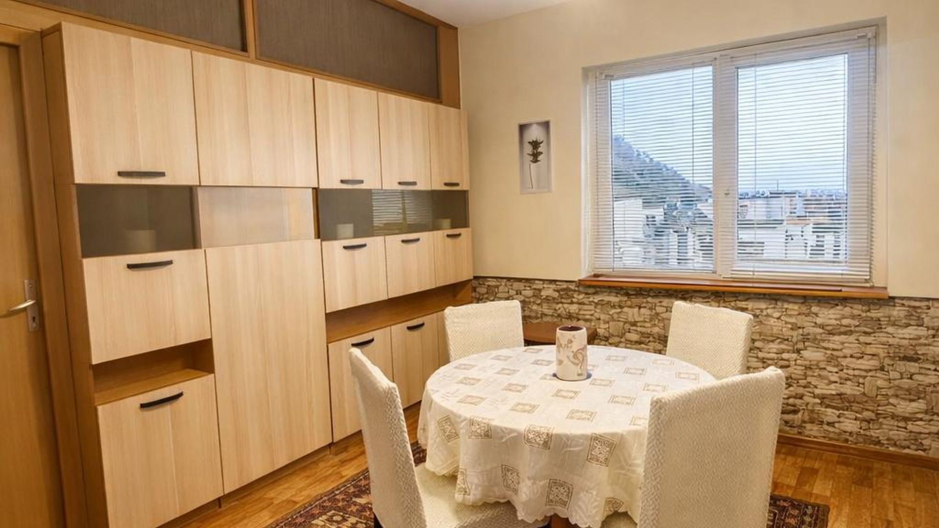 <br/>Жилището се предлага напълно обзаведено и оборудвано с всичко необходимо за едно домакинство.