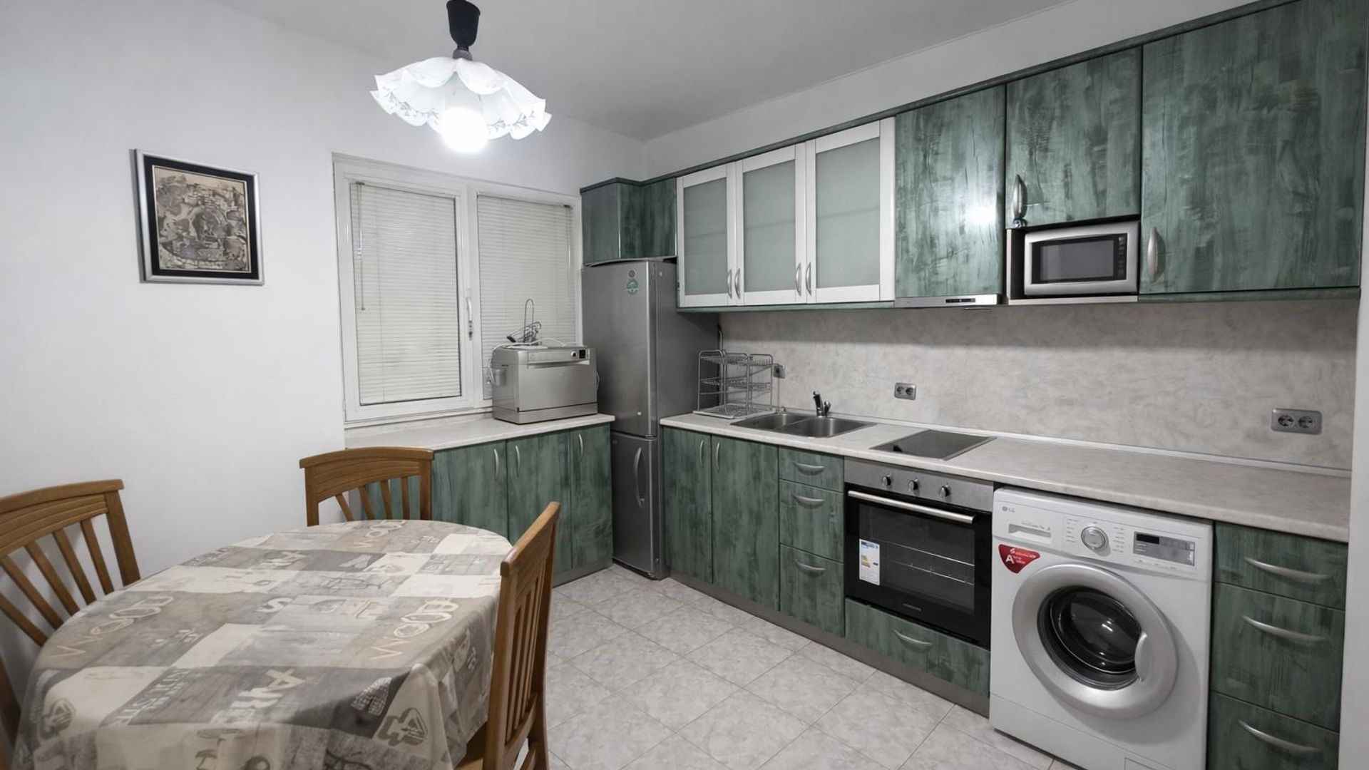 <br/>Апартаментът се предлага напълно обзаведен с всичко необходимо за едно домакинство, с контрол на входа с чип и добре поддържани и чисти общи части. За улеснение на своите наематели се предлага наличие на място за паркиране около блока.