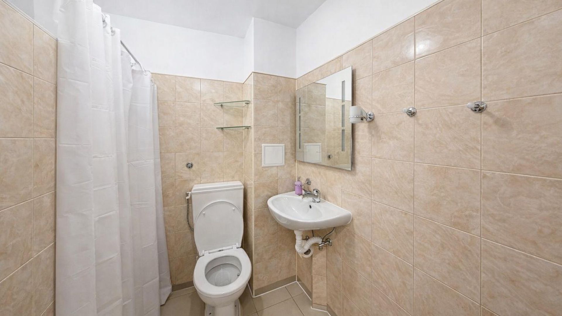 <br/>Имотът е ситуиран на 4-ти жилищен етаж и разполага с площ 60кв.м. разгърната в следното разпределение: просторен хол с кухненски бокс, спалня, баня с тоалетна и закрита тераса.