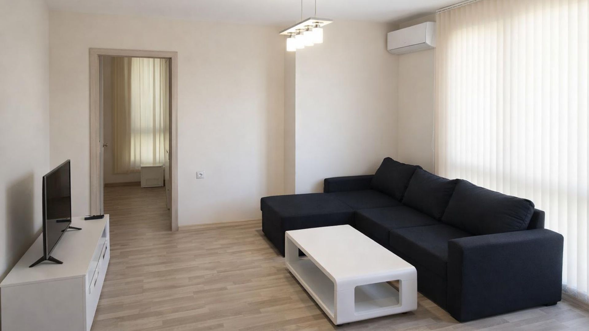 <br/>Имотът е ситуиран на 1-ви жилищен етаж и разполага с площ 70кв.м, разгърната в следното разпределение: входно антре, хол с кухненски бокс, спалня, баня с душ кабина и тоалетна, перално помещение и тераса с изглед към р. Марица.
