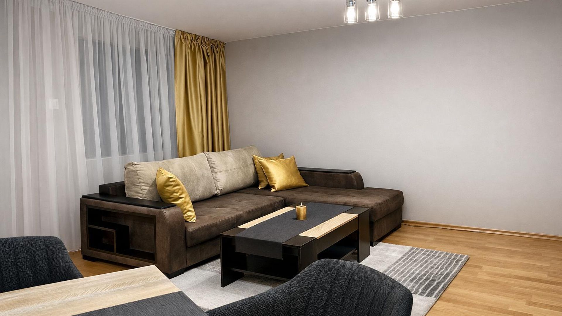 <br/>Светъл и функционален двустаен апартамент с отворен дневен тракт и отделна спалня. Удобен кухненски бокс и трапезария, перално помещение, склад и обща тераса ви предоставят пълно удобство и простор за свободни занимания. Просторните помещения и качествените материали подчертават практичността и стилния облик.