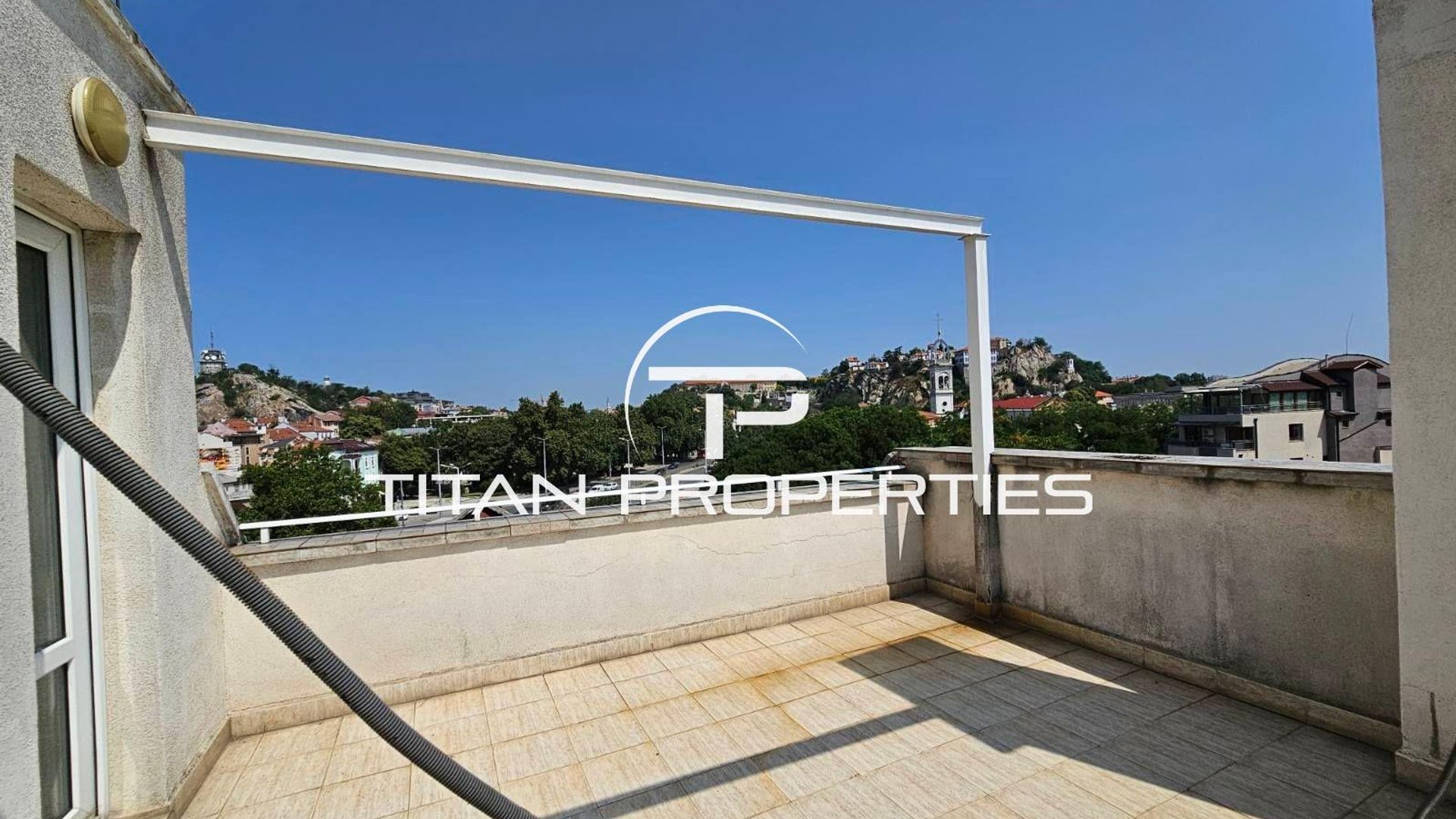 <br/>Имотът е с площ от 356 кв.м., впечатляващ с простор, светлина и панорамни гледки, разпределен както следва: просторна всекидневна с панорамни прозорци и излаз към голяма тераса, три елегантни спални, две модерни бани с тоалетни и релакс зона с панорамна сауна и джакузи, като от терасите се разкриват гледки към Стария град, Римския стадион и Бунарджика.