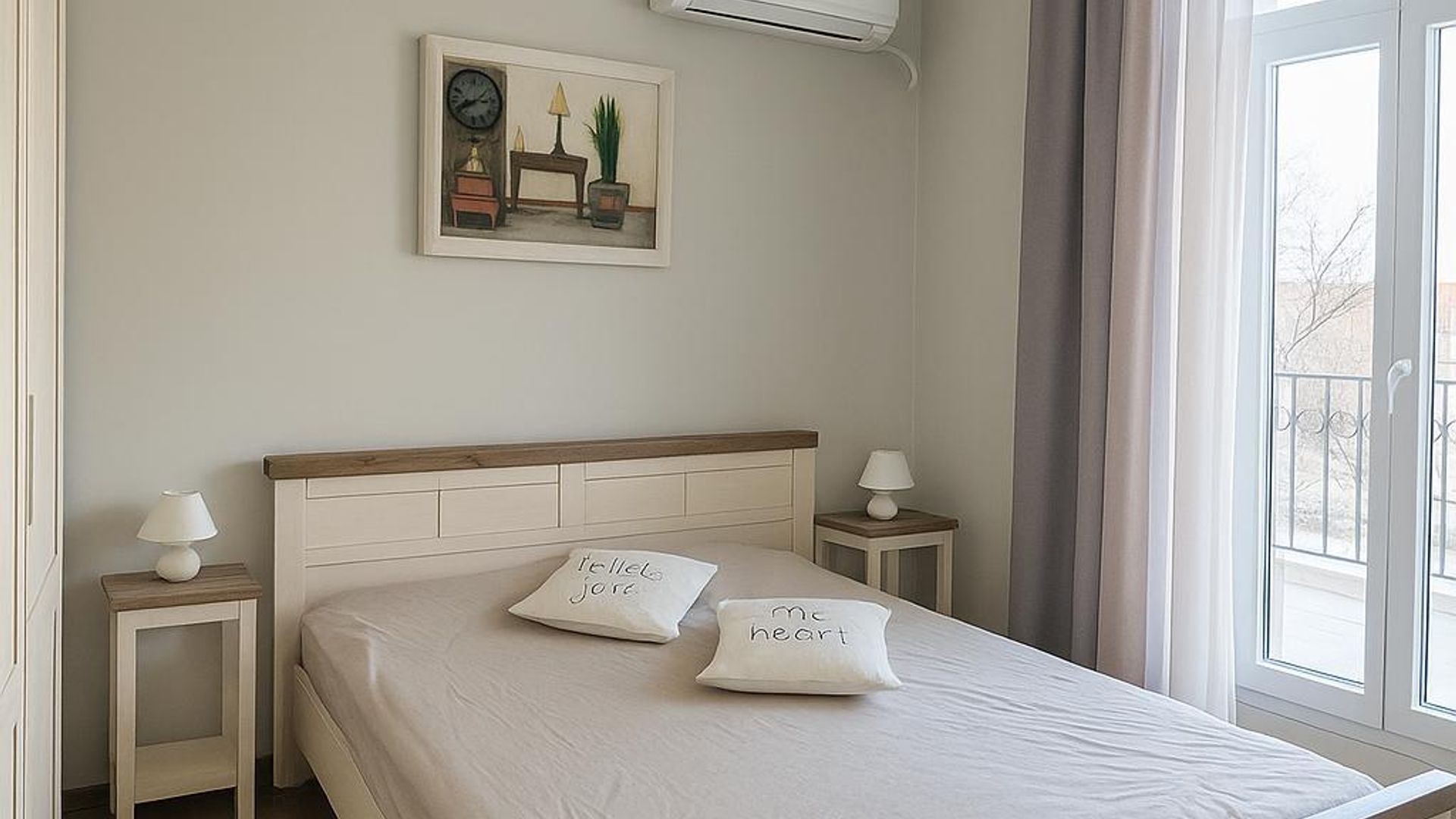 <br/>Имотът е ситуиран на 1-ви жилищен етаж и разполага с площ 90кв.м, разгърната в следното разпределение: входно антре, хол с кухненски бокс, две спални, баня с тоалетна и тераса.