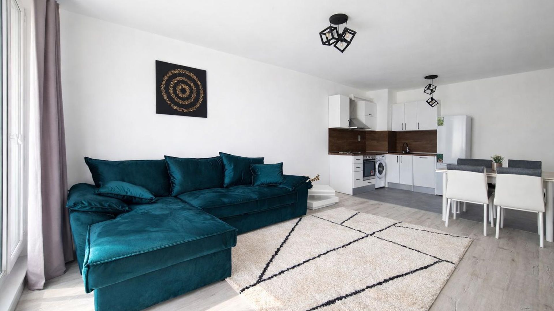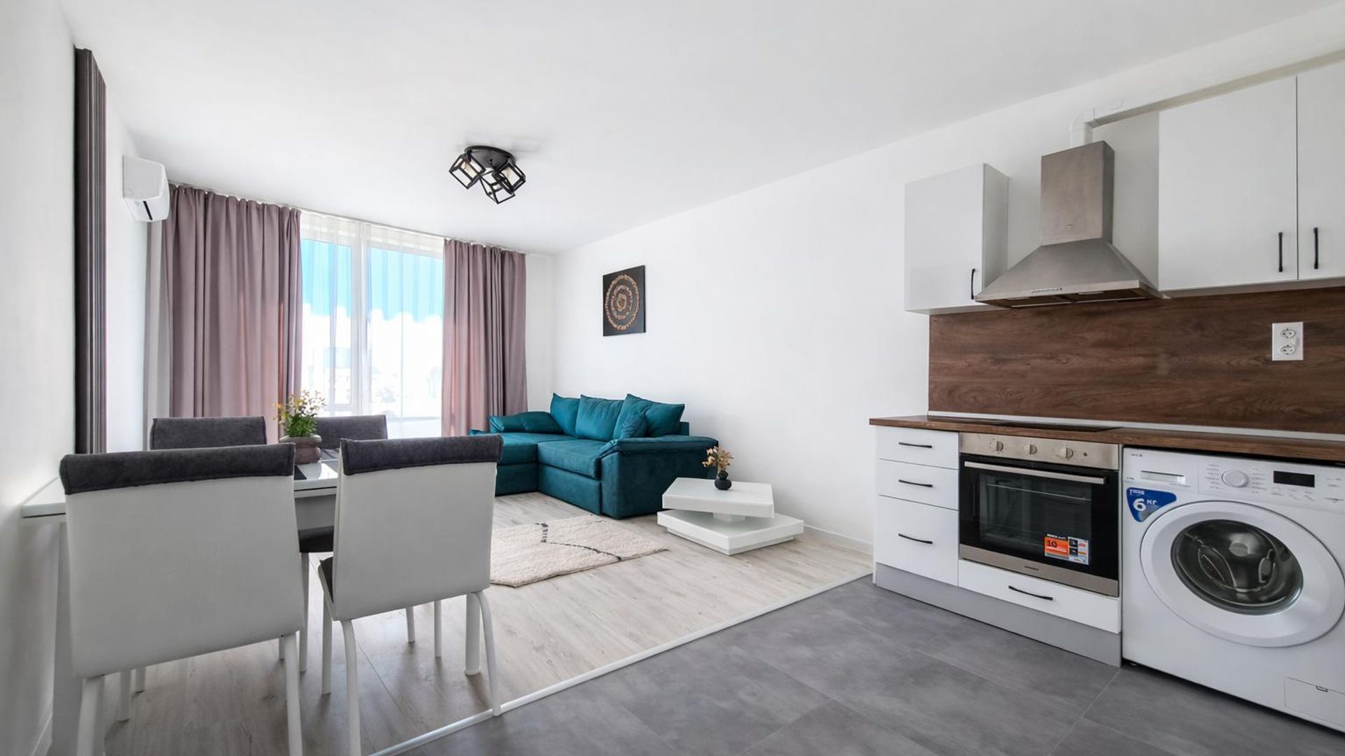 <br/>Жилището се предлага луксозно обзаведено и оборудвано с всичко необходимо за едно домакинство.