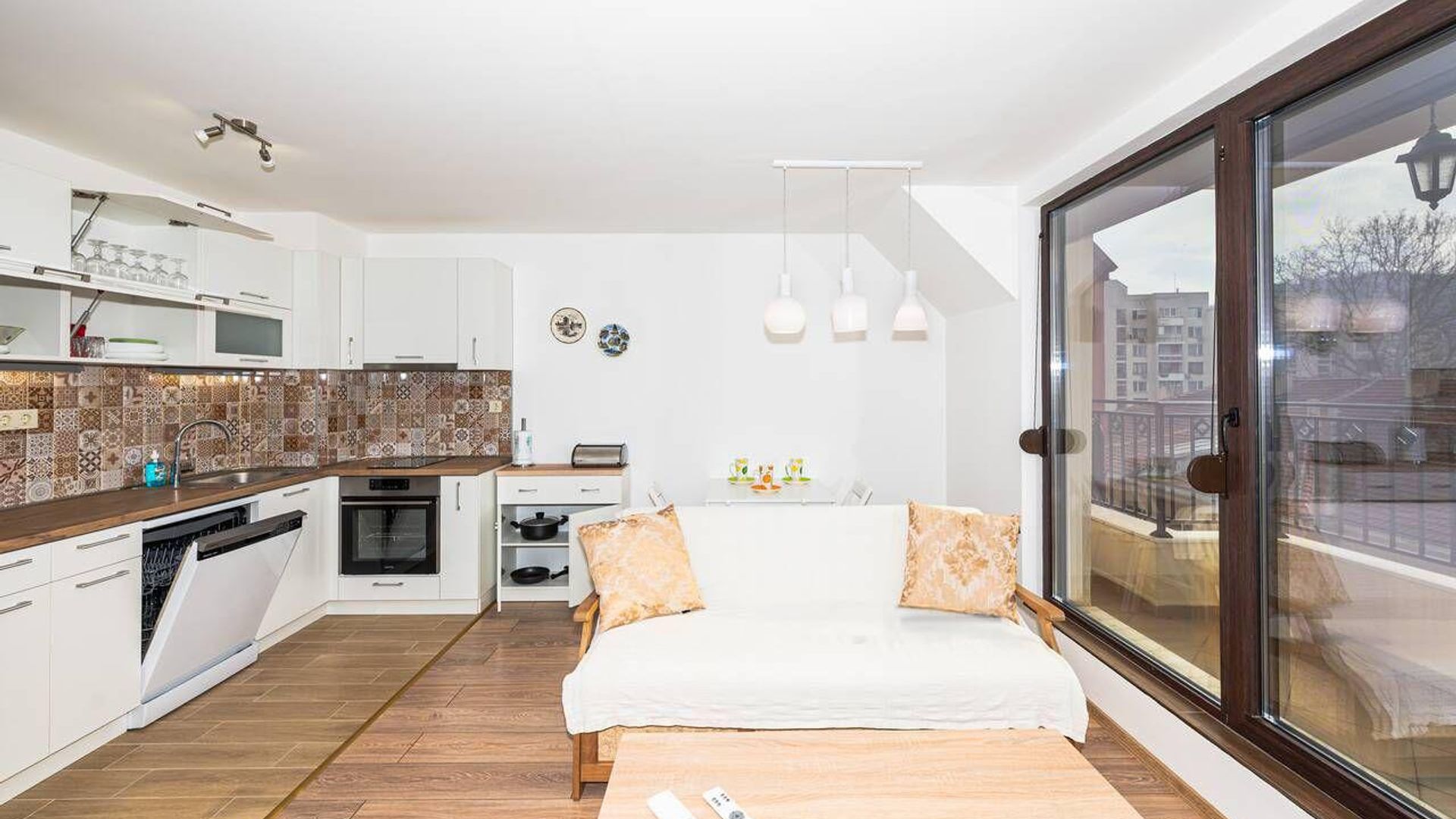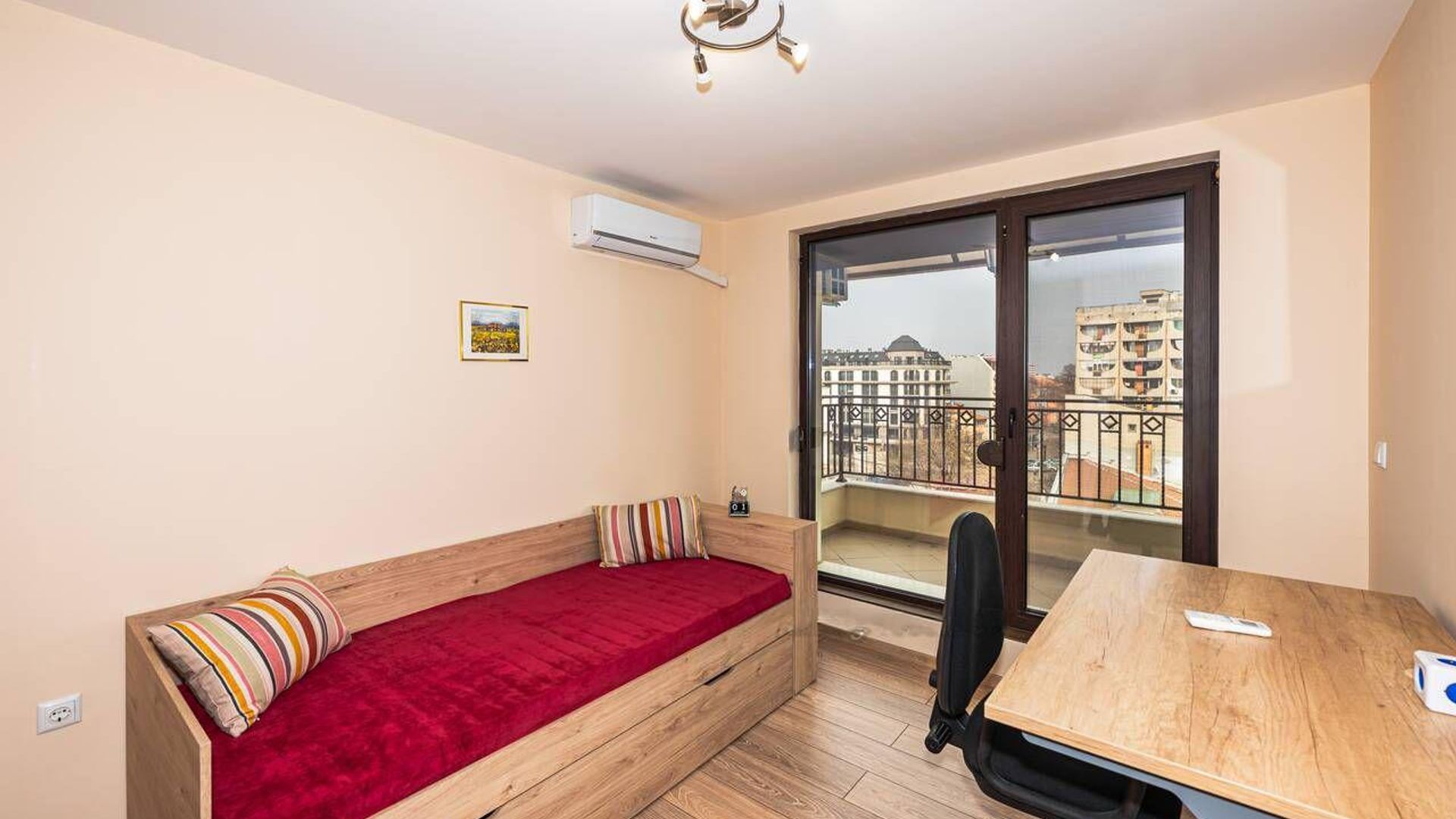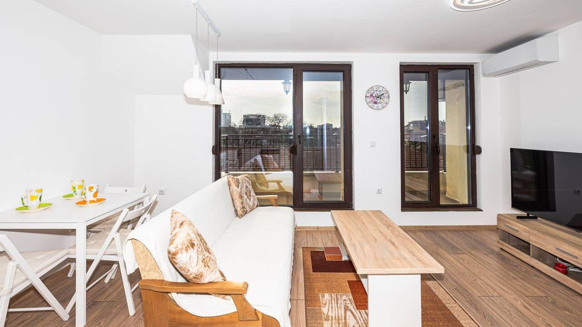 <br/>Жилището се предлага напълно обзаведено и оборудвано с нови, енергоспестяващи електроуреди и климатици във всяка стая.