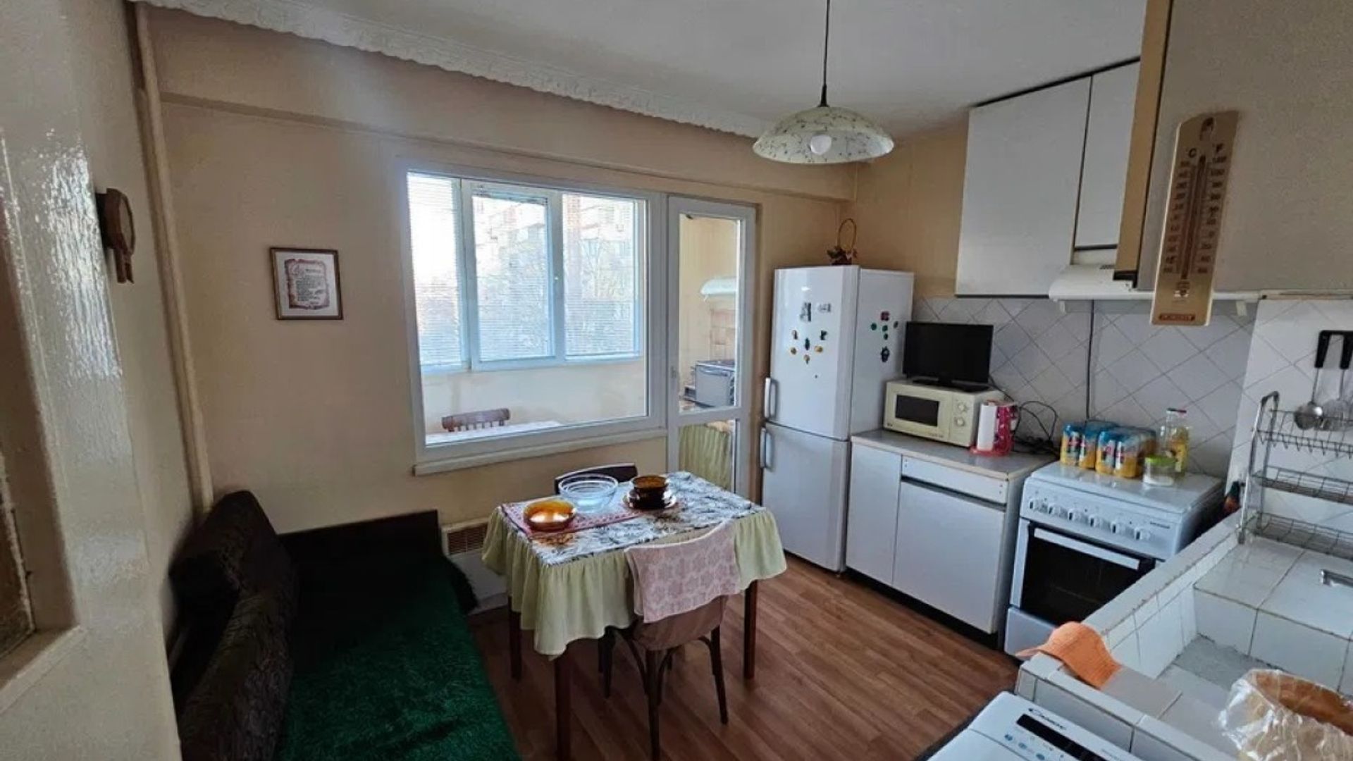 Агенция „Столица Инвест“ предлага на Вашето внимание отличен тристаен апартамент за продажба, ситуиран в кв. Чародейка-Юг. Имотът е разположен на третия етаж в шестетажна сграда с асансьор, отличаваща се с чисти общи части и отлична локация – в непосредствена близост до училища, спирки на градския транспорт и разнообразни търговски обекти. Жилището разполага с площ от 82 кв.м. и е с функционално изложение север-юг, което гарантира светлина и естествен уют през целия ден. Разпределението е изключително практично и без преходни помещения, включващо широк коридор, просторна кухня, голяма всекидневна, две комфортни спални, баня и тоалетна (отделни санитарни помещения), както и две тераси, едната от които е остъклена. Към имота принадлежи и избено помещение с площ от 5 кв.м. Апартаментът е поддържан с много внимание и е в готовност да посрещне своите нови собственици. Дограмата е изцяло подменена с нова PVC, а подовите настилки са от естествен паркет в дневната и спалните и ламинат в кухнята. Отоплението е изцяло решено на електричество, което позволява гъвкавост и контрол на разходите. Имотът се предлага на пазара напълно обзаведен, което Ви спестява време и допълнителни инвестиции при нанасяне. Сградата разполага с достатъчно места за паркиране в околоблоковото пространство, осигурявайки комфорт за собствениците на автомобили. Благодарение на своите характеристики, този апартамент е прекрасен избор както за създаване на Вашия нов семеен дом, така и за перспективна инвестиция с цел отдаване под наем.