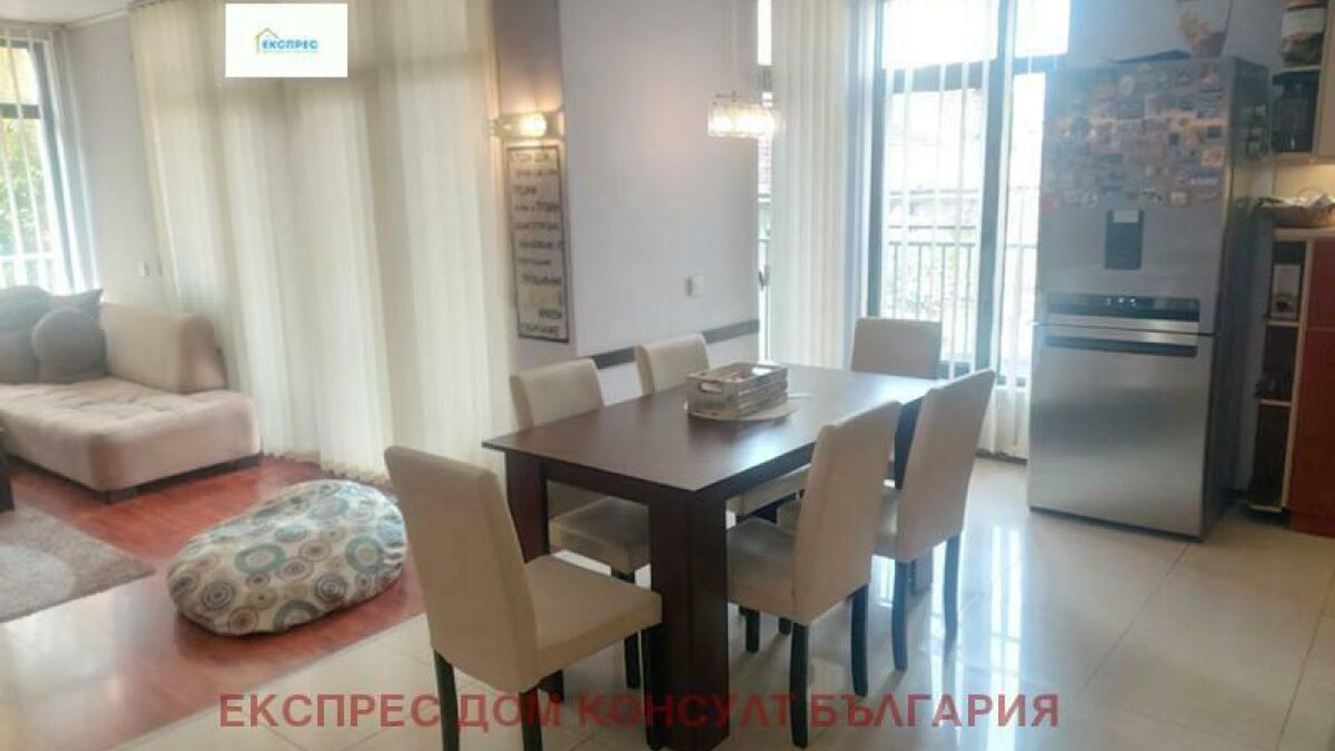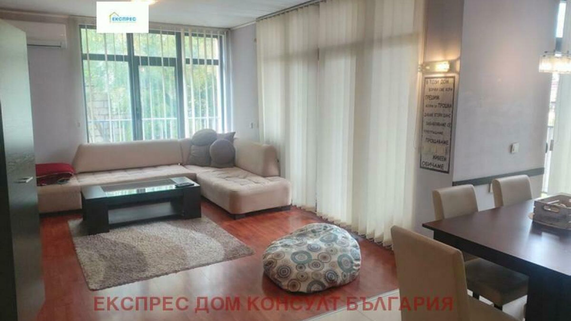 Агенция за недвижими имоти Експрес Дом Консулт България предлага на вашето внимание, просторен, светъл тристаен апартамент на изключително комуникативно място в близост до спирки на градския транспорт, бъдеща метростанция, училища, детски градини, супермаркети, бизнес и административни сгради. Разпределение : входно антре, хол с кухненски бокс и трапезария, две спални, баня с тоалетна, тоалетна за гости, тераса. Имотът се предлага под наем напълно обзаведен. Кухня с вградени маркови електроуреди, инверторен климатик. Отопление и охлаждане: електричество. Имотът се намира в нова тухлена кооперация с контрол на достъпа и добре поддържани общи части. Предимства: до спирки на градския транспорт, супермаркети, училища, детски градини. Ниски консумативни разходи и много други екстри. Свободен за нанасяне от 1.12.2025г. ИМОТЪТ Е ПОДХОДЯЩ ЗА САМ ЧОВЕК ИЛИ ДВОЙКА!!