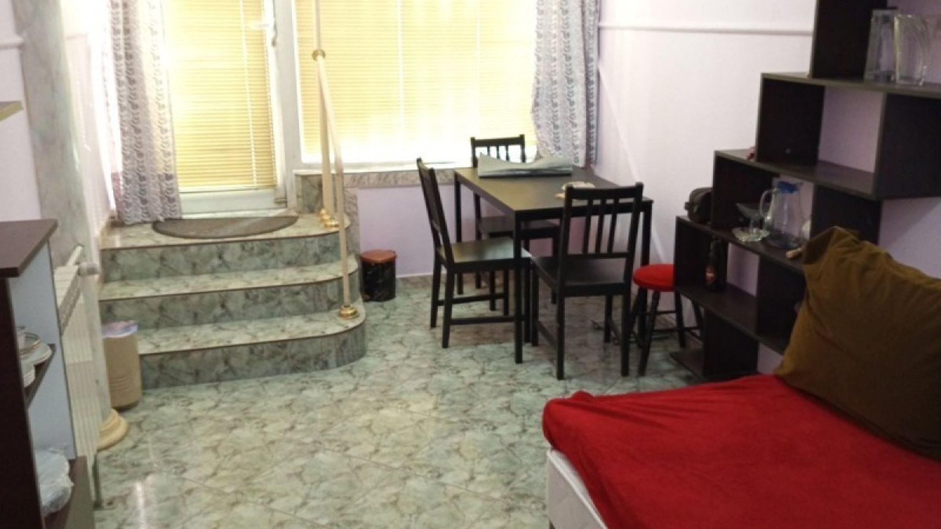 Обзаведена партерна боксониера, подходяща за сам човек или двойка, може и с домашен любимец /наемът с домашен любимец е 650 лв./. Състои се от едно помещение, отделен кухн.бокс / без мивка/ и баня с тоалетна. Обзавеждането е следното: едно легло, маса, столове, шкафове, бяла техника. Отлично място, до вериги магазини, заведения, клиники, аптеки, спирки на градския транспорт, на 10 мин пеша до метро станция.
