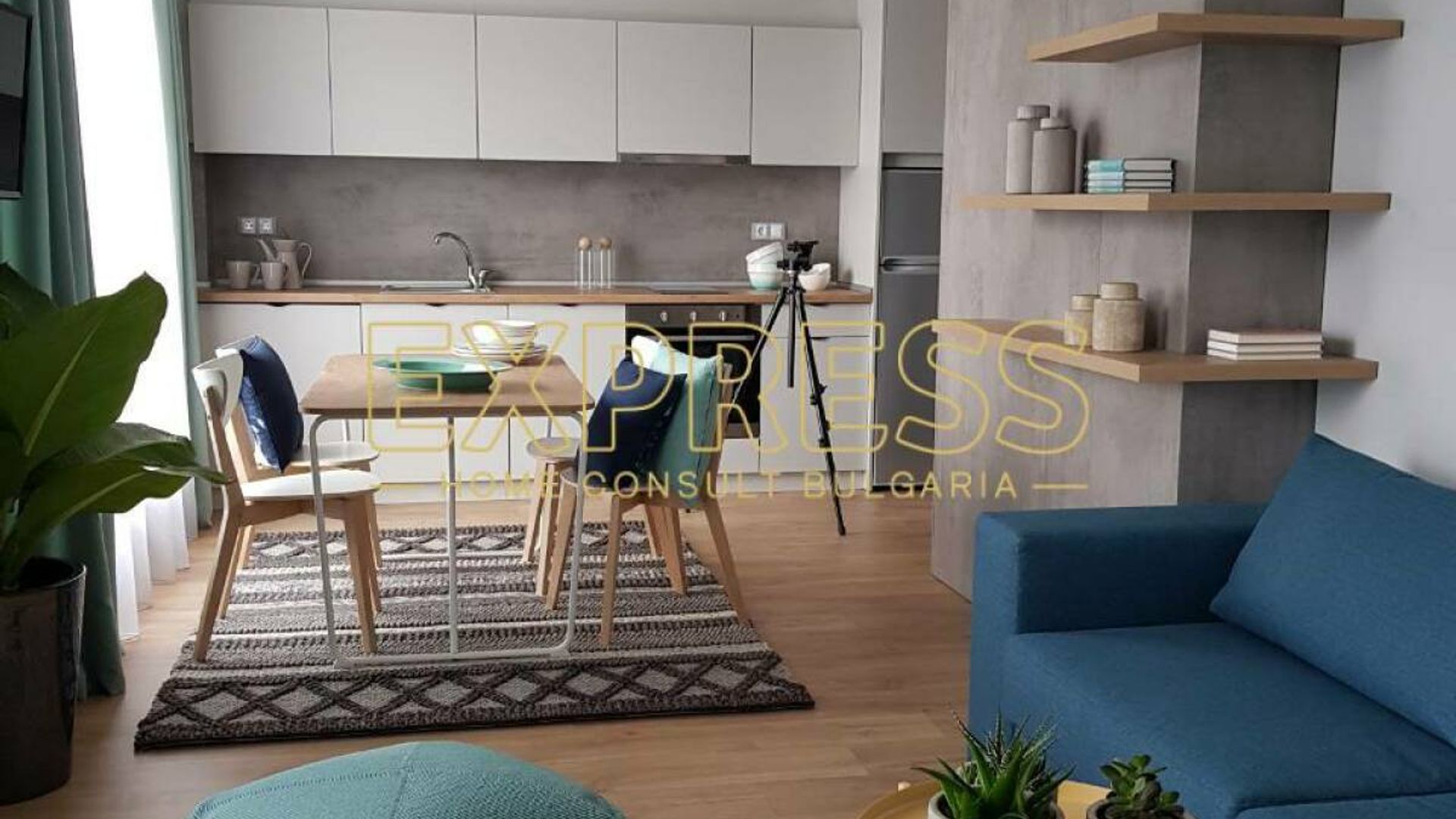 Свободен от 01.03.2026г! Агенция за недвижими имоти Експрес Дом Консулт България предлага на вашето внимание луксозно обзаведен, слънчев двустаен апартамент в комплекс от затворен тип в непосредствена близост до УНСС, множество магазини, хипермаркети, заведения, спирки на градския транспорт. Разпределение: входно антре, хол с кухненски бокс, спалня, баня с тоалетна, гардеробно, тераса. Имотът е напълно обзаведен с нови модерни мебели, кухня с вградени маркови електроуреди, включително съдомиялна, LCD телевизор, инверторен климатик от висок клас. Настилки: под ламинат, гранитогрес, стени латекс. Имотът се намира в комплекс от затворен тип с контрол на достъпа, видеонаблюдение и озеленяване. Предимства: луксозно обзаведен, слънчев двустаен апартамент в непосредствена близост до УНСС, магазини, хипермаркети, бизнес и административни сгради. Ниски консумативни разходи и много други екстри. ПОСОЧЕНА НАЕМНА ЦЕНА ВКЛЮЧВА ДДС.