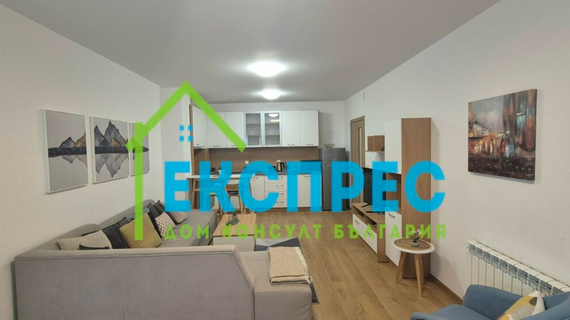 Агенция за недвижими имоти Експрес Дом Консулт България предлага на вашето внимание нов, слънчев, просторен двустаен апартамент на изключително комуникативно място в близост до метростанция, множество спирки на градския транспорт, училища, детски градини,бизнес и административни сгради. Разпределение: входно антре, хол с кухненски бокс и трапезария, спалня, баня с тоалетна, складово помещение, балкон. Имотът се отдава напълно обзаведен. Кухня с вградени маркови електроуреди, инверторен климатик от висок клас в спалнята. Настилки ламинат, гранитогрес, стени: латекс. Апартаментът се намира в нова тухлена кооперация с контрол на достъпа и луксозни общи части. Възможност за наемане на паркомясто срещу 100 евро. Предимства: до метростанция, училища, бизнес и административни сгради, магазини, хипермаркети. Ниски консумативни разходи и много други екстри.