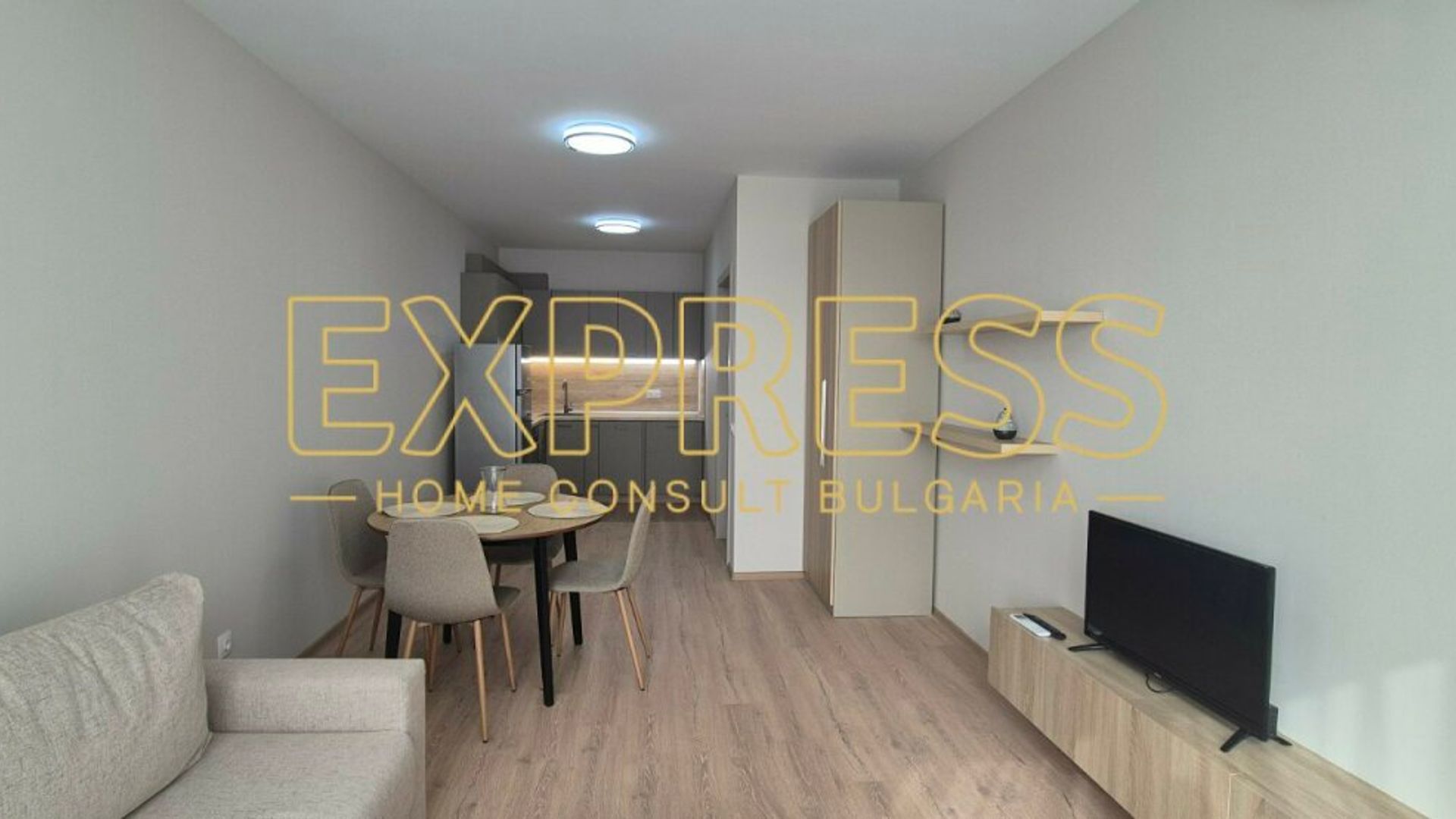 Агенция за недвижими имоти Експрес Дом Консулт предлага на вашето внимание, нов двустаен апартамент на изключително комуникативно място в близост до спирки на градския транспорт, хипермаркети, бизнес и административни сгради. Луксозни общи части и поддържано междублоково пространство, контролиран достъп до апартамента. Разпределение: входно антре, всекидневна, кухненски бокс, спалня, баня с тоалетна и тераса. Настилки ламинат, гранитогрес и стени латекс. Апартаментът е нов, до момента не е ползван, напълно обзаведен е с ново стилно обзавеждане, инверторни климатици от висок клас в стаите, баня с душкабина. Вградена кухня с нови маркови електроуреди включително съдомиална. Предимства: Намира се на тихо място в нова сграда, която предлага на живущите много комфорт и удобства. Ниски консумативни разходи и много други екстри.