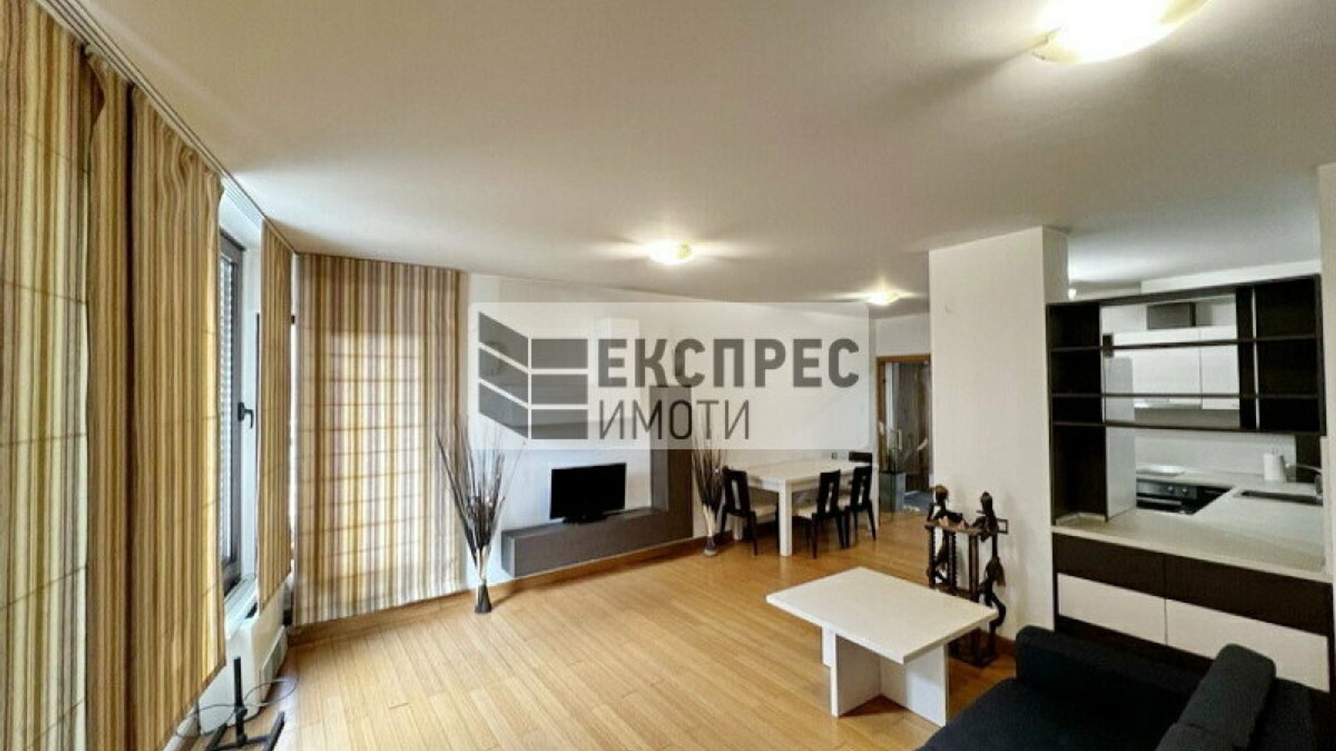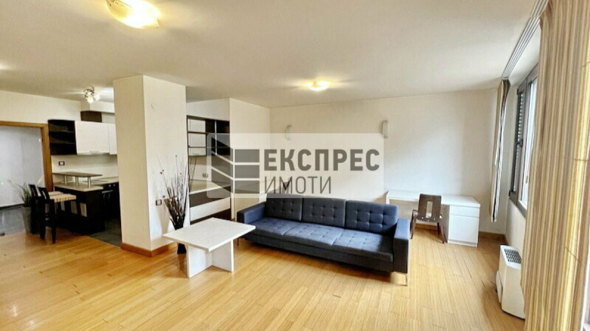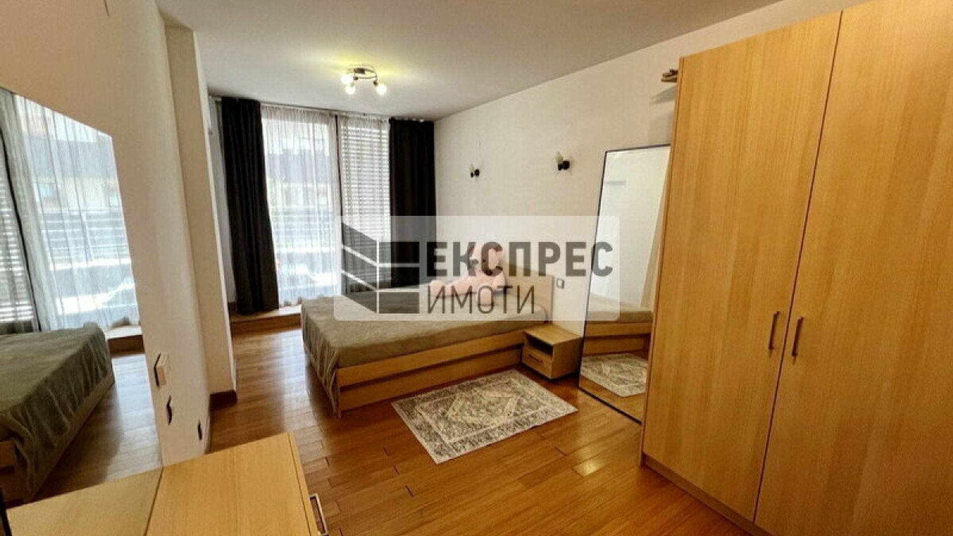 Експрес Имоти предлага на Вашето внимание просторен апартамент под наем, разположен в един от предпочитаните райони на София. Комплексът разполага с прекрасна градина, плувен басейн и фитнес, осигуряващи комфорт и удобство на обитателите. Осигурени са денонощна охрана и контролиран достъп, гарантиращи сигурност и спокойствие. Апартаментът е напълно обзаведен и предлага всички удобства, които ще направят ежедневието Ви по-лесно и приятно. В допълнение, могат да се наемат два гаража на приземното ниво на сградата. Разпределение: Просторно входно антре с портманто Туалетна за гости с мивка Мокро помещение с пералня и сушилня Разчупена всекидневна, включваща обособена работна част с две бюра, мека мебел, холна маса, TV сет шкафове, трапезария с голяма маса и столове Вградена кухня с нови уреди Просторна спалня с тоалетка и пълен комплект мебели Собствено санитарно помещение към спалнята с мивка, душ отдел, конзолно окачени биде и тоалетна Панорамна тераса към спалнята и хола Апартаментът разполага с централна климатична система и газ. Жилището се отдава на сериозни наематели с дългосрочни намерения. За повече информация и огледи не се колебайте да се свържете с нас. Имот номер: № 17563