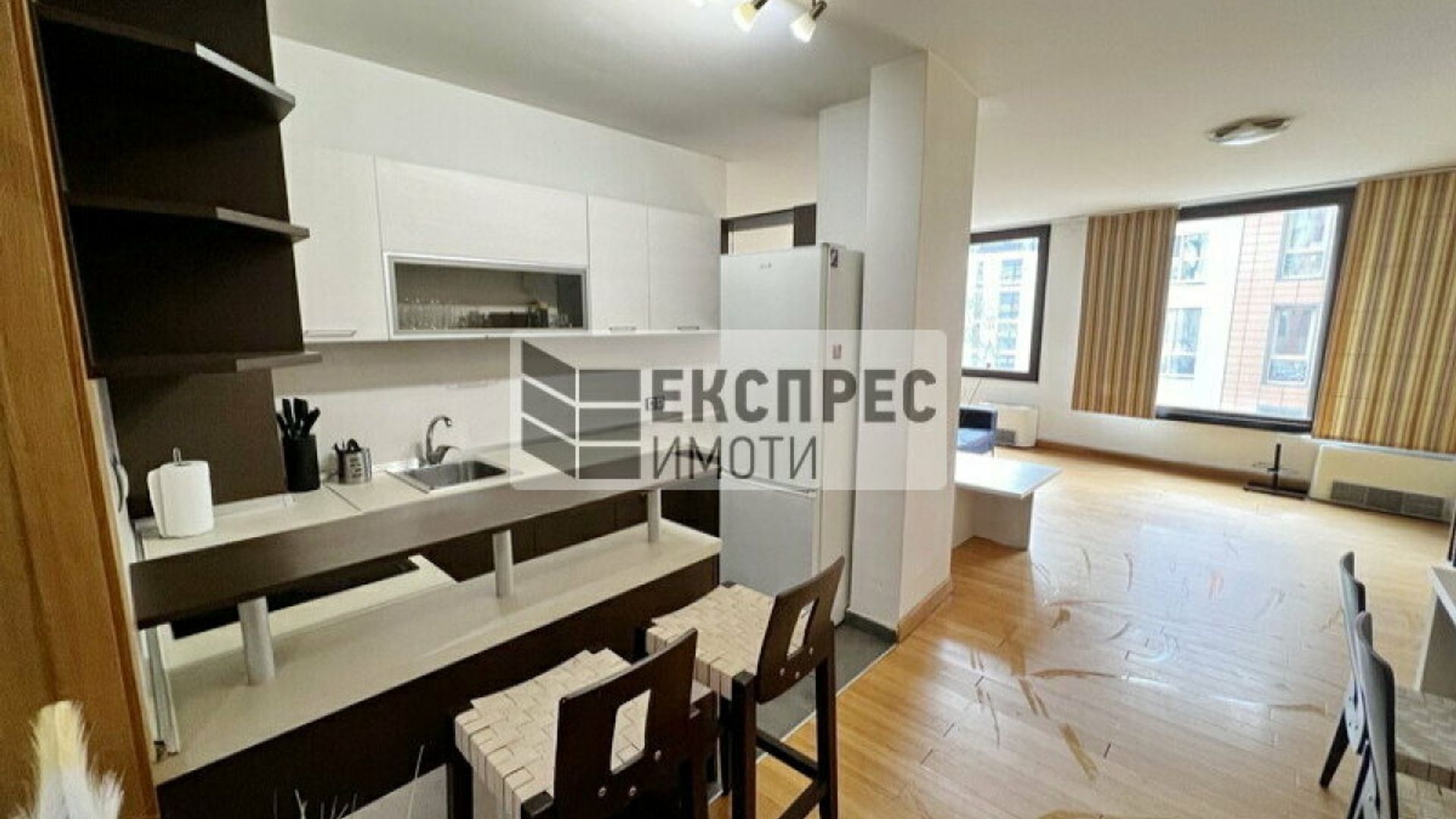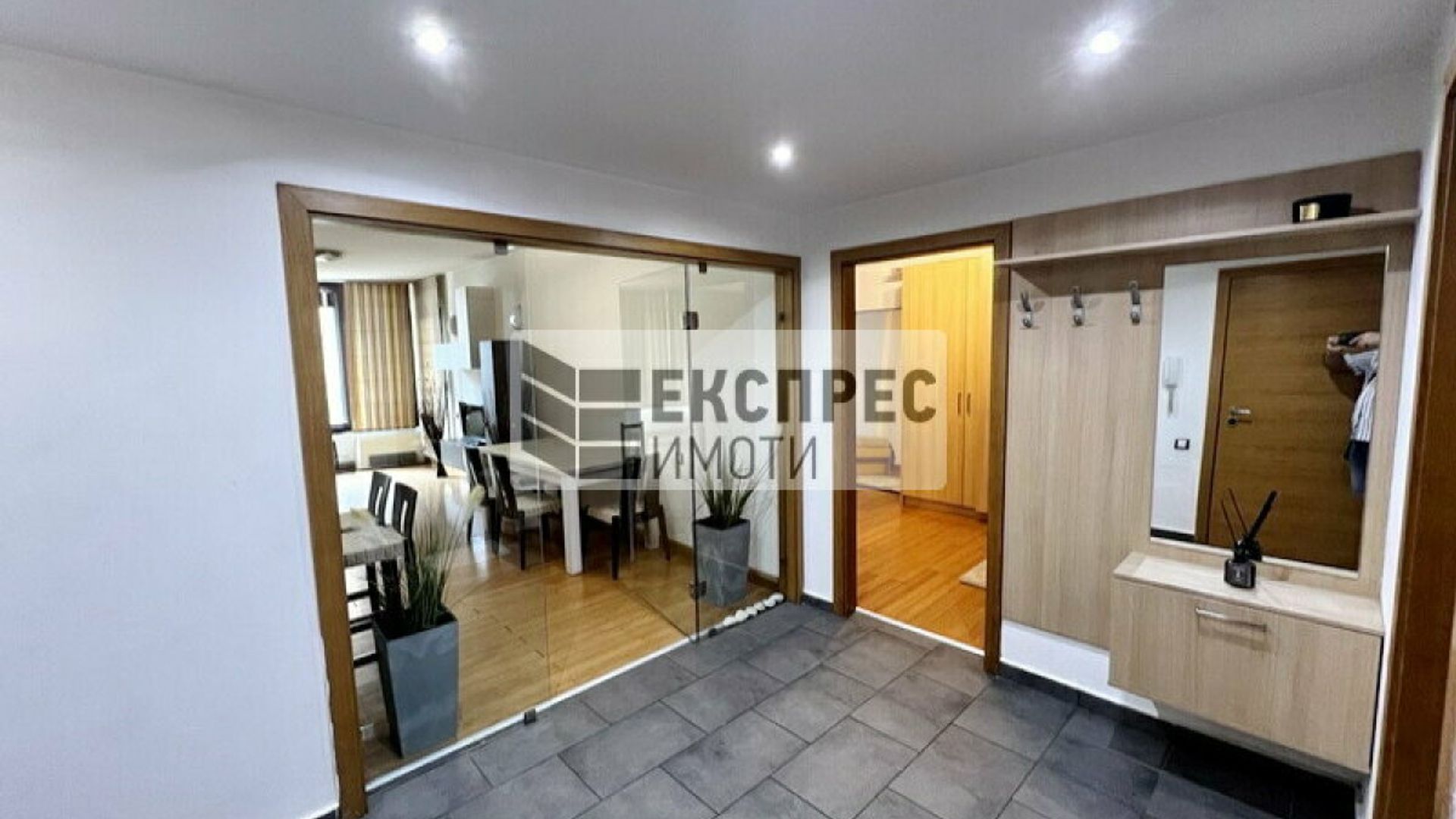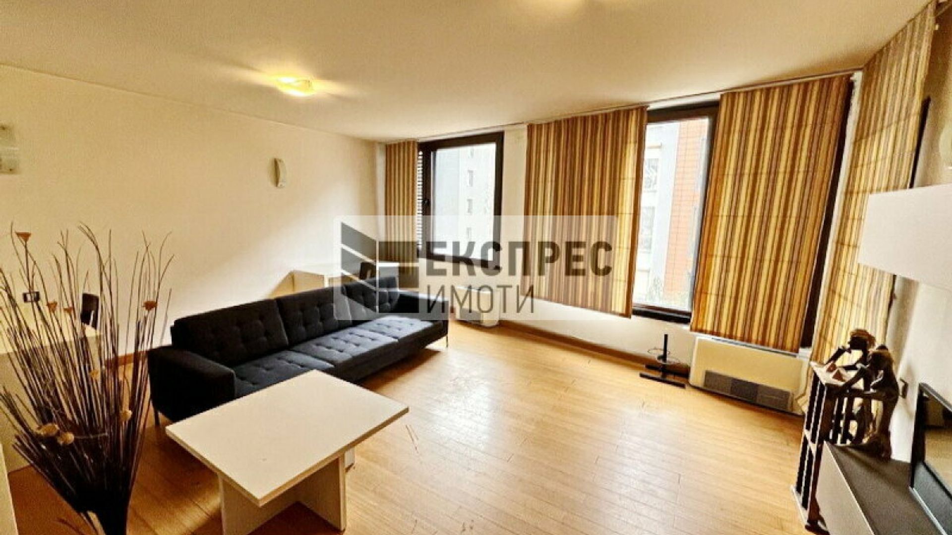 Експрес Имоти предлага на Вашето внимание просторен апартамент под наем, разположен в един от предпочитаните райони на София. Комплексът разполага с прекрасна градина, плувен басейн и фитнес, осигуряващи комфорт и удобство на обитателите. Осигурени са денонощна охрана и контролиран достъп, гарантиращи сигурност и спокойствие. Апартаментът е напълно обзаведен и предлага всички удобства, които ще направят ежедневието Ви по-лесно и приятно. В допълнение, могат да се наемат два гаража на приземното ниво на сградата. Разпределение: Просторно входно антре с портманто Туалетна за гости с мивка Мокро помещение с пералня и сушилня Разчупена всекидневна, включваща обособена работна част с две бюра, мека мебел, холна маса, TV сет шкафове, трапезария с голяма маса и столове Вградена кухня с нови уреди Просторна спалня с тоалетка и пълен комплект мебели Собствено санитарно помещение към спалнята с мивка, душ отдел, конзолно окачени биде и тоалетна Панорамна тераса към спалнята и хола Апартаментът разполага с централна климатична система и газ. Жилището се отдава на сериозни наематели с дългосрочни намерения. За повече информация и огледи не се колебайте да се свържете с нас. Имот номер: № 17563