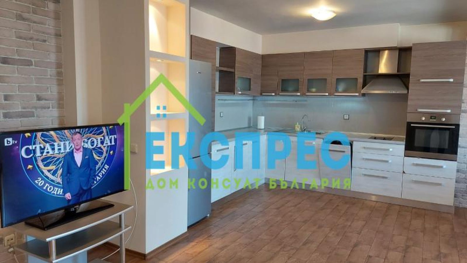 ПОДЗЕМЕН ГАРАЖ ВКЛЮЧЕН В ЦЕНАТА !!!Агенция за недвижими имоти Експрес Дом Консулт България предлага на вашето внимание луксозно обзаведен, слънчев, панорамен двустаен апартамент на изключително комуникативно място в близост до спирки на градския транспорт, хипермаркети, ОКОЛОВРЪСТЕН ПЪТ. Разпределение: входно антре, просторен хол с кухненски бокс, спалня, баня с тоалетна, тераса. Имотът се предлага напълно обзаведен с вградена кухня с нови маркови електроуреди, включително съдомиялна,LCD телевизор, инверторен климатик в хола, баня с душ кабина. Панорамна гледка към София и Витоша. Настилки: ламинат, латекс, гранитогрес. Имотът се намира в нова тухлена кооперация с отлично поддържани общи части и контрол на достъпа. Предимства : светъл, просторен, панорамен апартамент на комуникативно място с бърз достъп до БИЗНЕС ПАРК СОФИЯ. Ниски консумативни разходи и много други екстри. За повече информация и огледи не се колебайте да се свържете с нас или посетете нашия уебсайт: www.sofiarent.com Имот номер: A-20134777