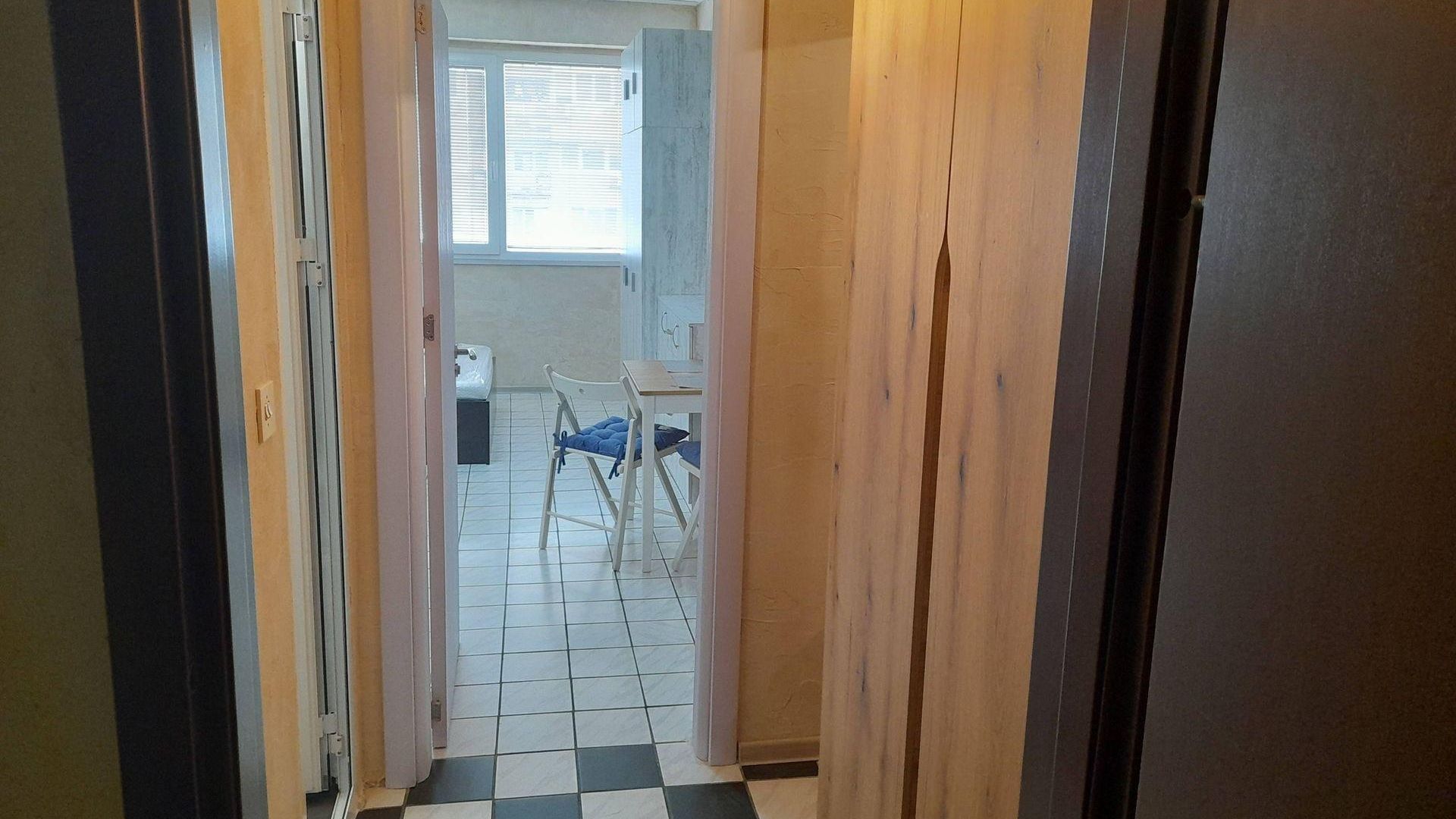 <br/>Жилището е с площ 30 кв.м, разположено на 4-ти етаж в 7-етажна панелна сграда. Изложението Запад осигурява естествена светлина.