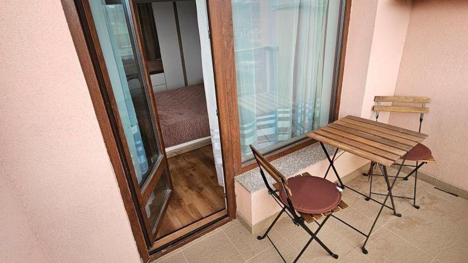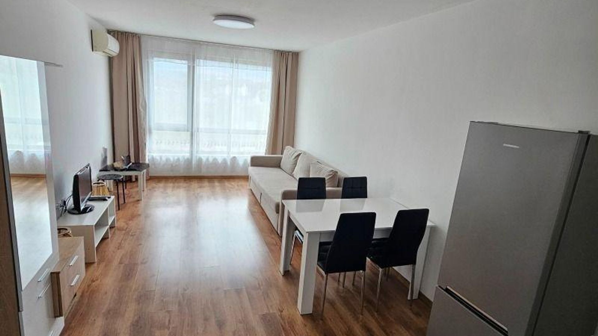 <br/>Апартаментът е напълно обзаведен и готов за нанасяне, отоплява се на ток, разполага с два климатика.