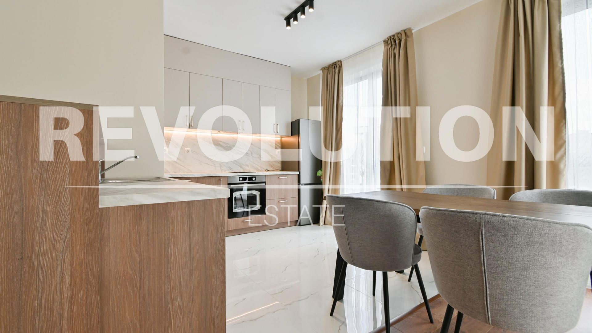 <br/>Просторен четиристаен апартамент в нова, модерна сграда, завършен с висококачествени материали и елегантни детайли. Стилно обзаведен, предоставя отворен хол с кухненски бокс, три светли спални, модерни мокри помещения и балкон. Допълнително разполага с двоен гараж за комфорт и сигурност.