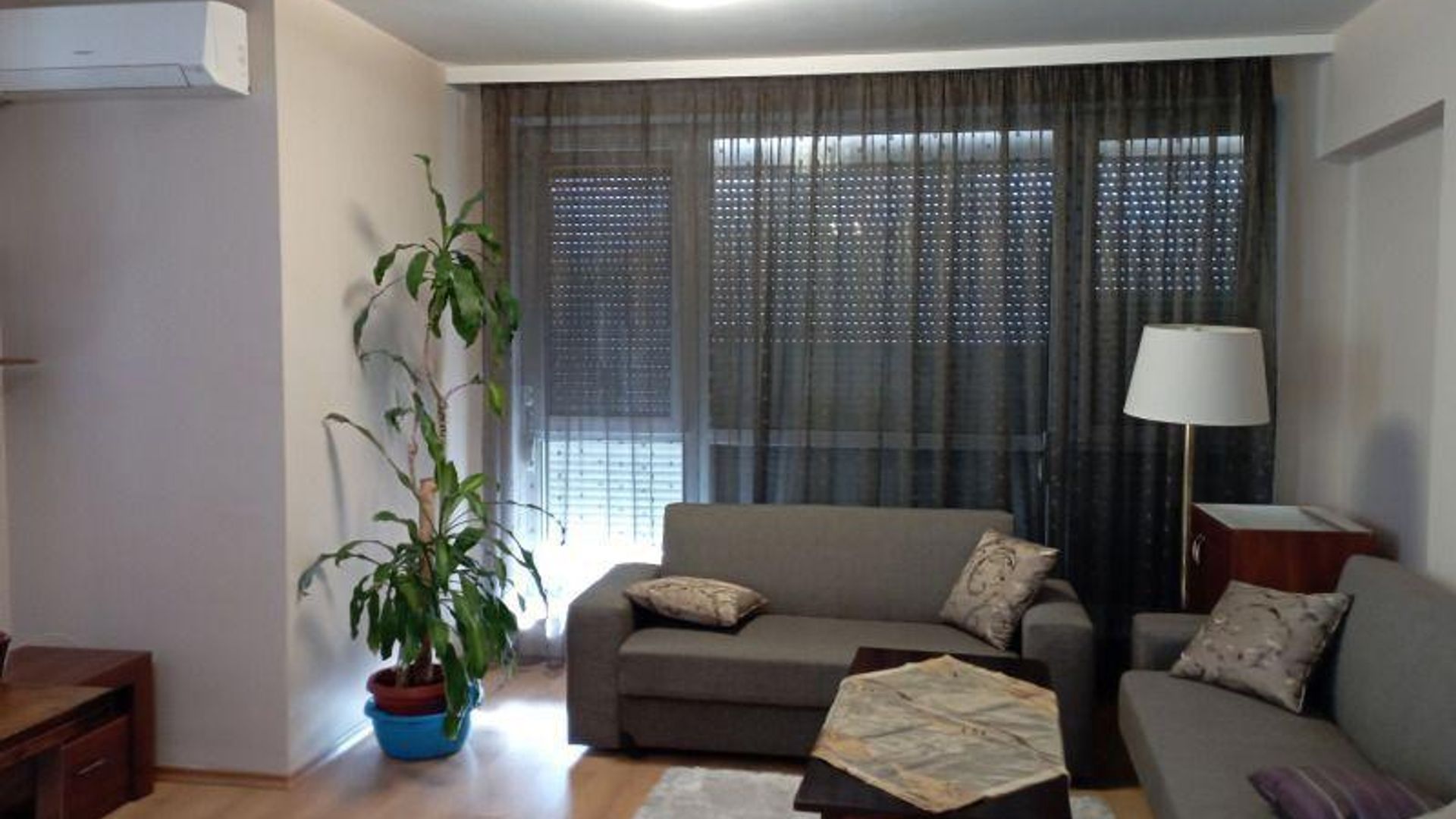 <br/>Апартаментът се предлага напълно обзаведен и оборудван. Отоплява се на ТЕЦ и разполага с климатици.