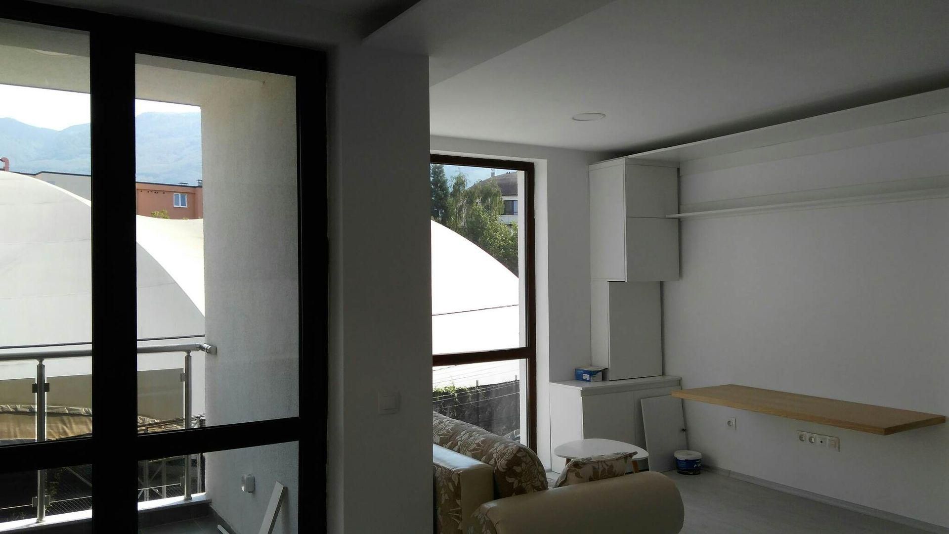 <br/>Апартаментът се предлага полуобзаведен, което позволява обзавеждане според индивидуалните нужди. Отоплява се на газ, разполага с климатик и интернет окабеляване.