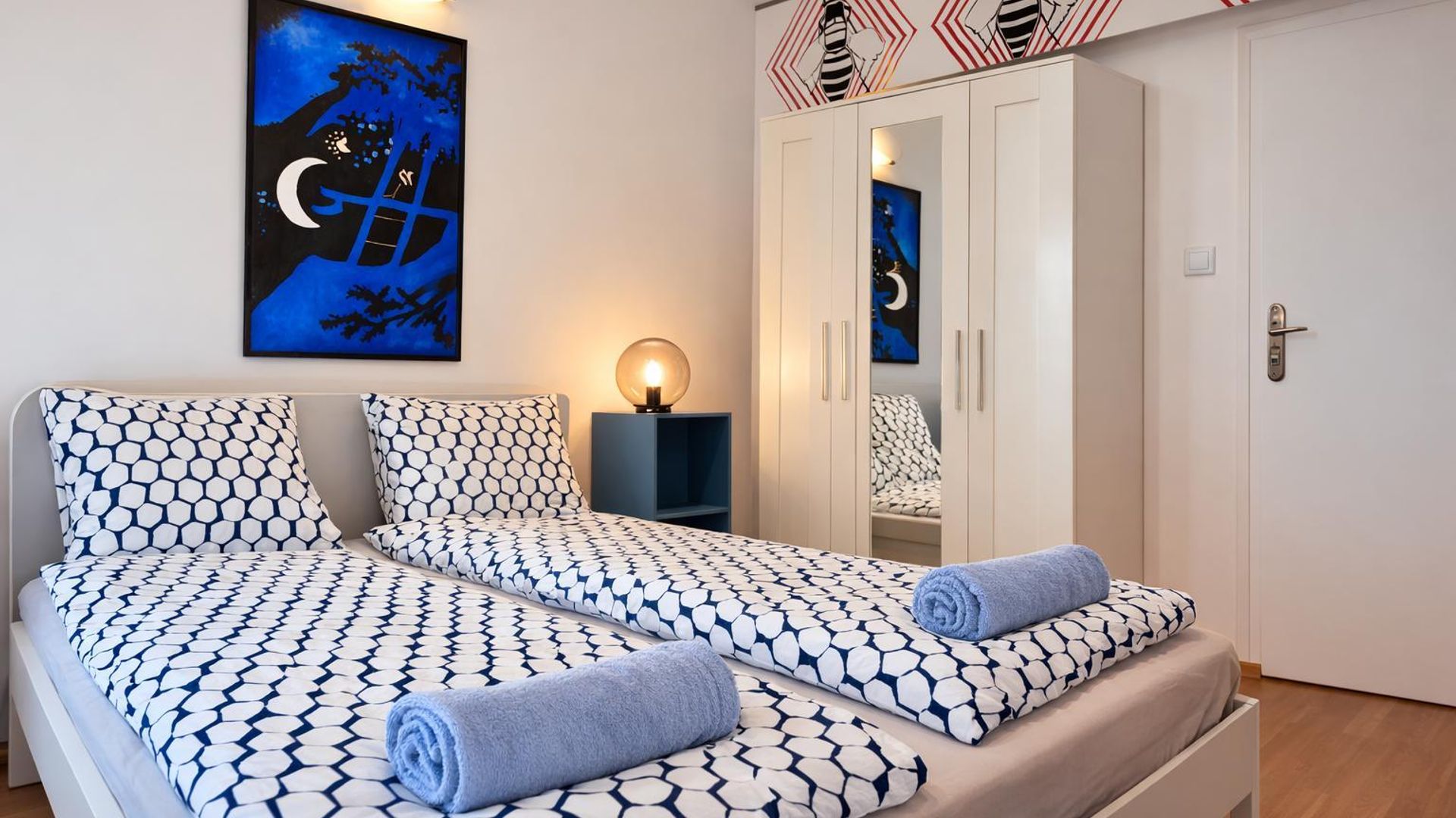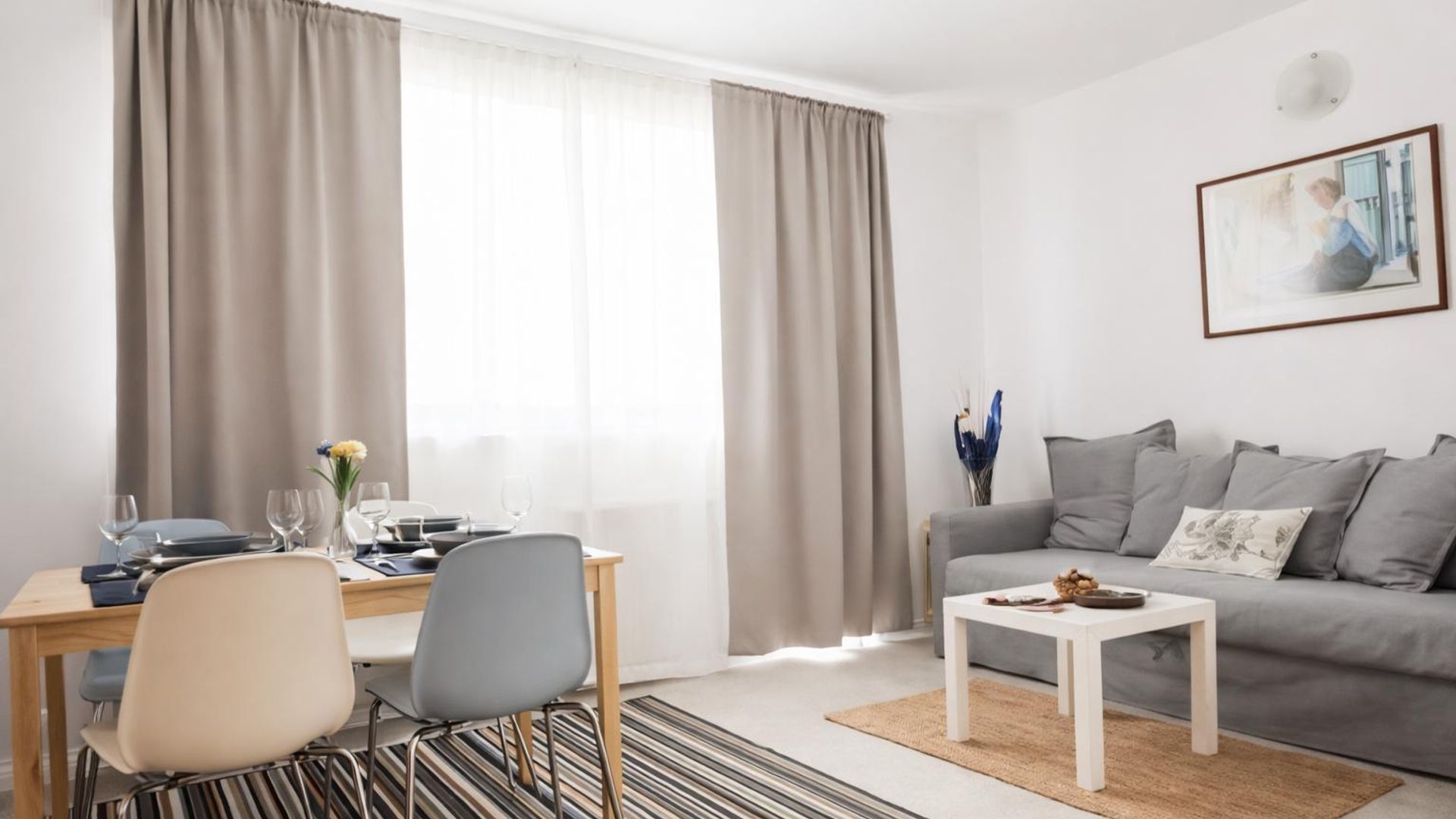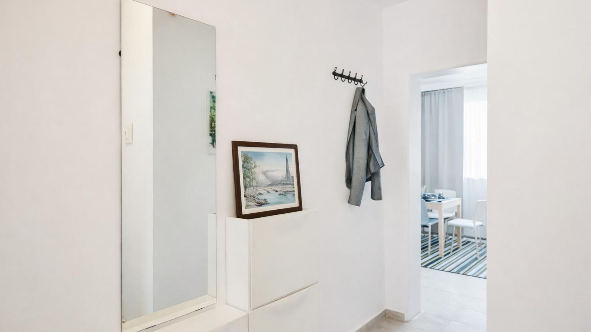 <br/>Разпределението включва коридор, хол, кухня, две спални, баня и тоалетна, както и две тераси, достъпни от спалните помещения. Апартаментът е обзаведен и разполага с централно отопление на ТЕЦ и климатик. Сред допълнителните преимущества е близостта до спирки на градския транспорт.