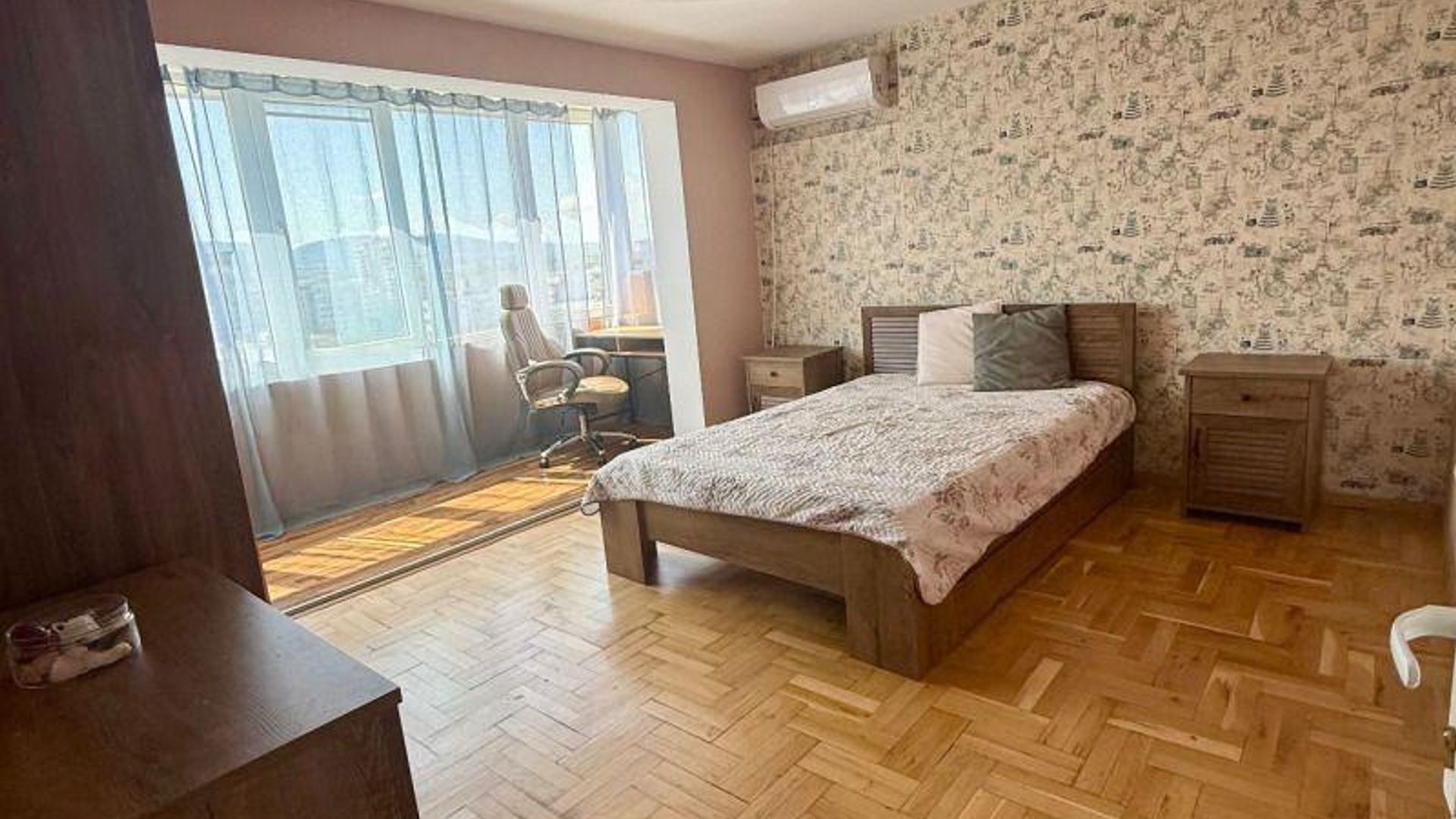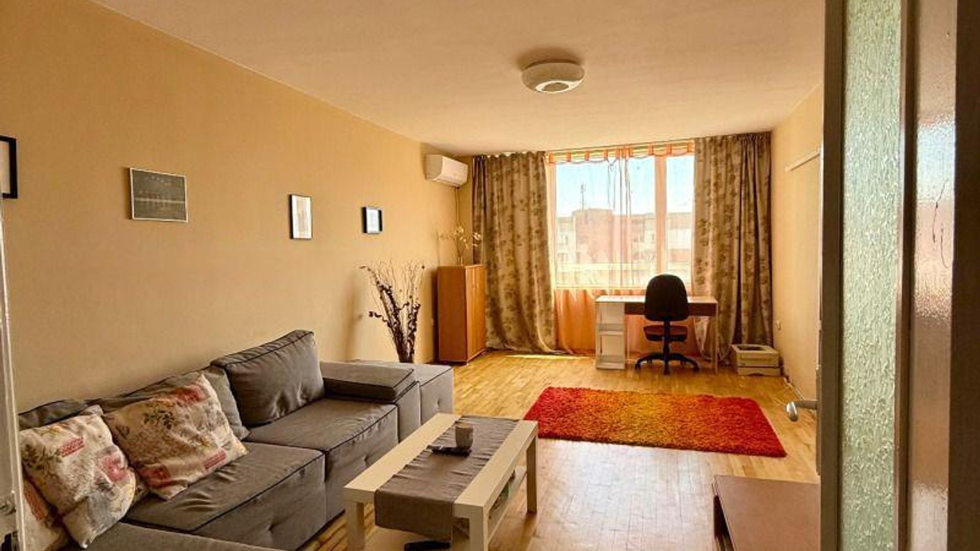 <br/>Апартаментът се предлага обзаведен. Отоплява се на ток посредством климатици и разполага с интернет окабеляване.
