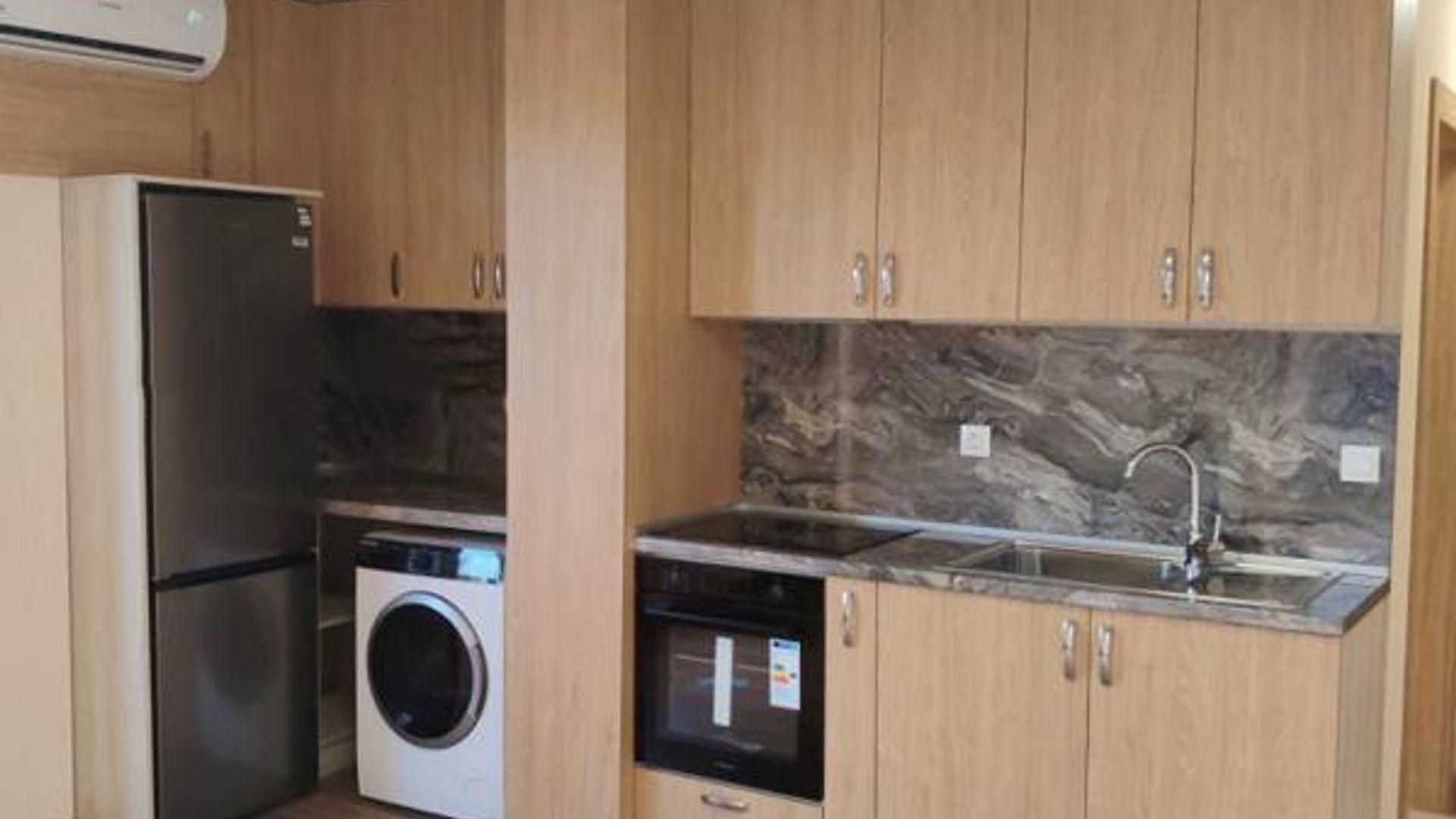 <br/>Разпределение: входно антре, кухненски бокс с хол и трапезария, спалня, баня с тоалетна и тераса