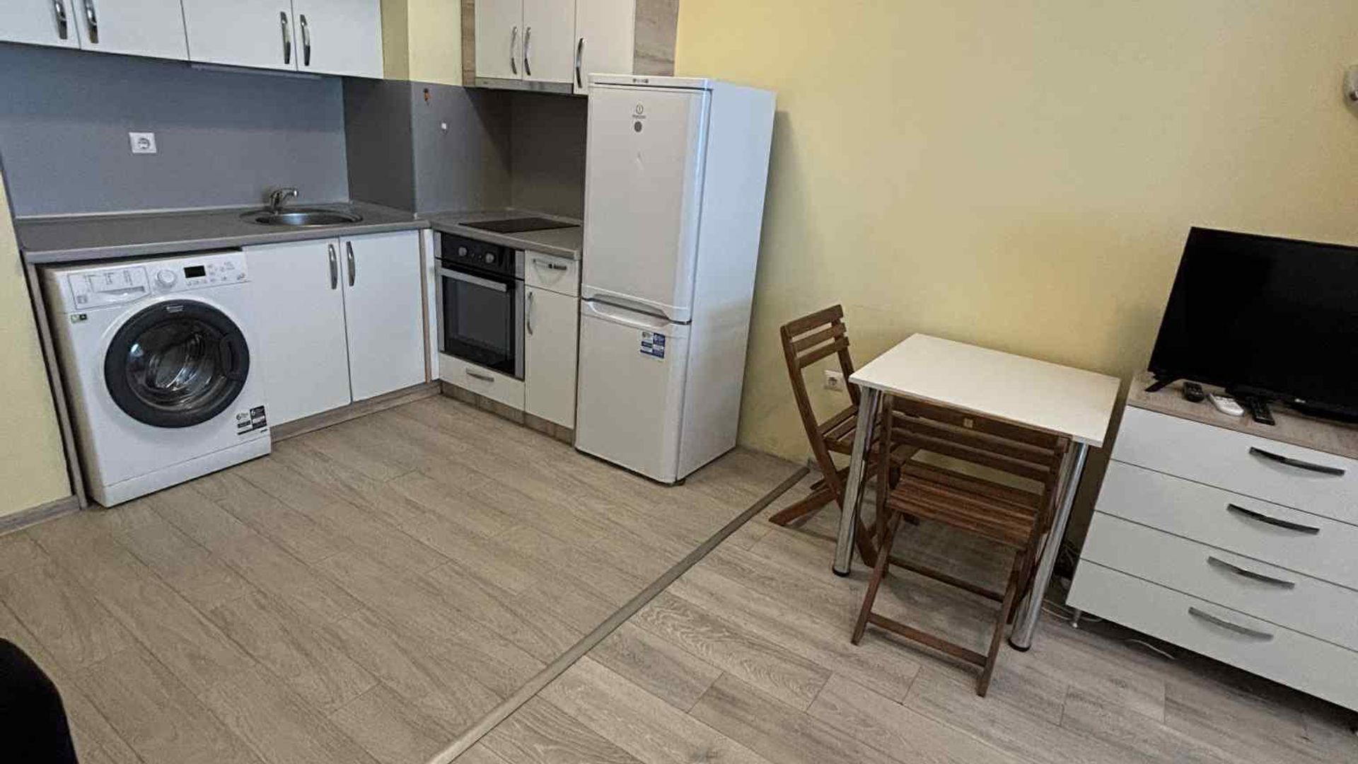 <br/>Интериорът е обзаведен, а функционалното разпределение включва хол с кухненски бокс, спалня, мокро помещение и тераса.