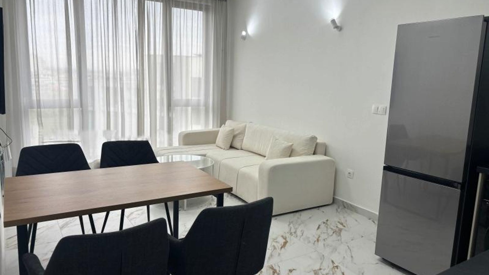 <br/>Апартаментът се предлага напълно обзаведен и оборудван. Отоплява се на ток.