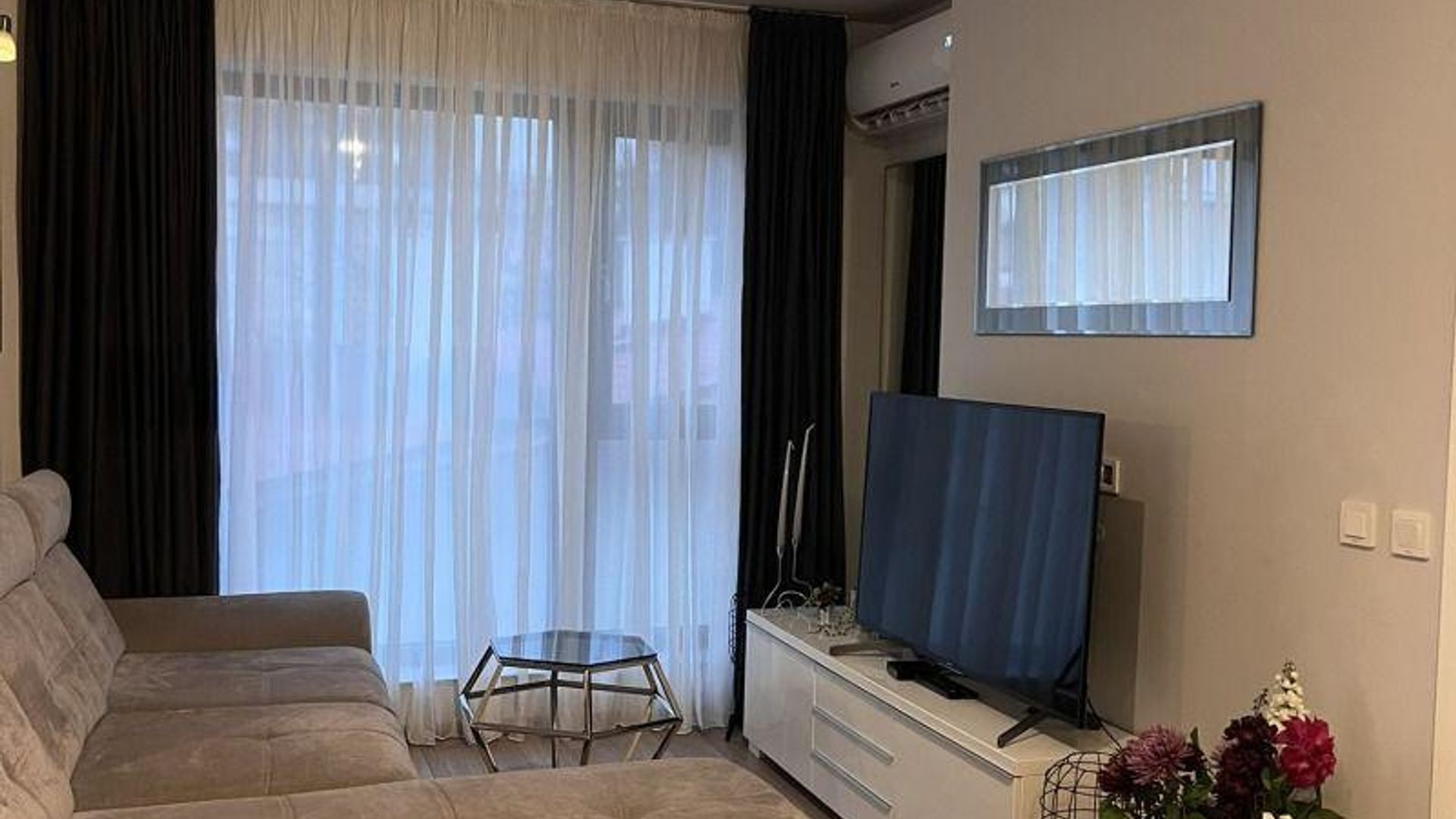 <br/>Предимства на имота: светъл и просторен на комуникативна локация. Намира се в непосредствена близост до парк, спирки на градски транспорт, заведения, хранителни магазини, училище, детска градина и търговски обекти. Апартаментът разполага с КЛИМАТИК и ТЕЛЕВИЗОР.