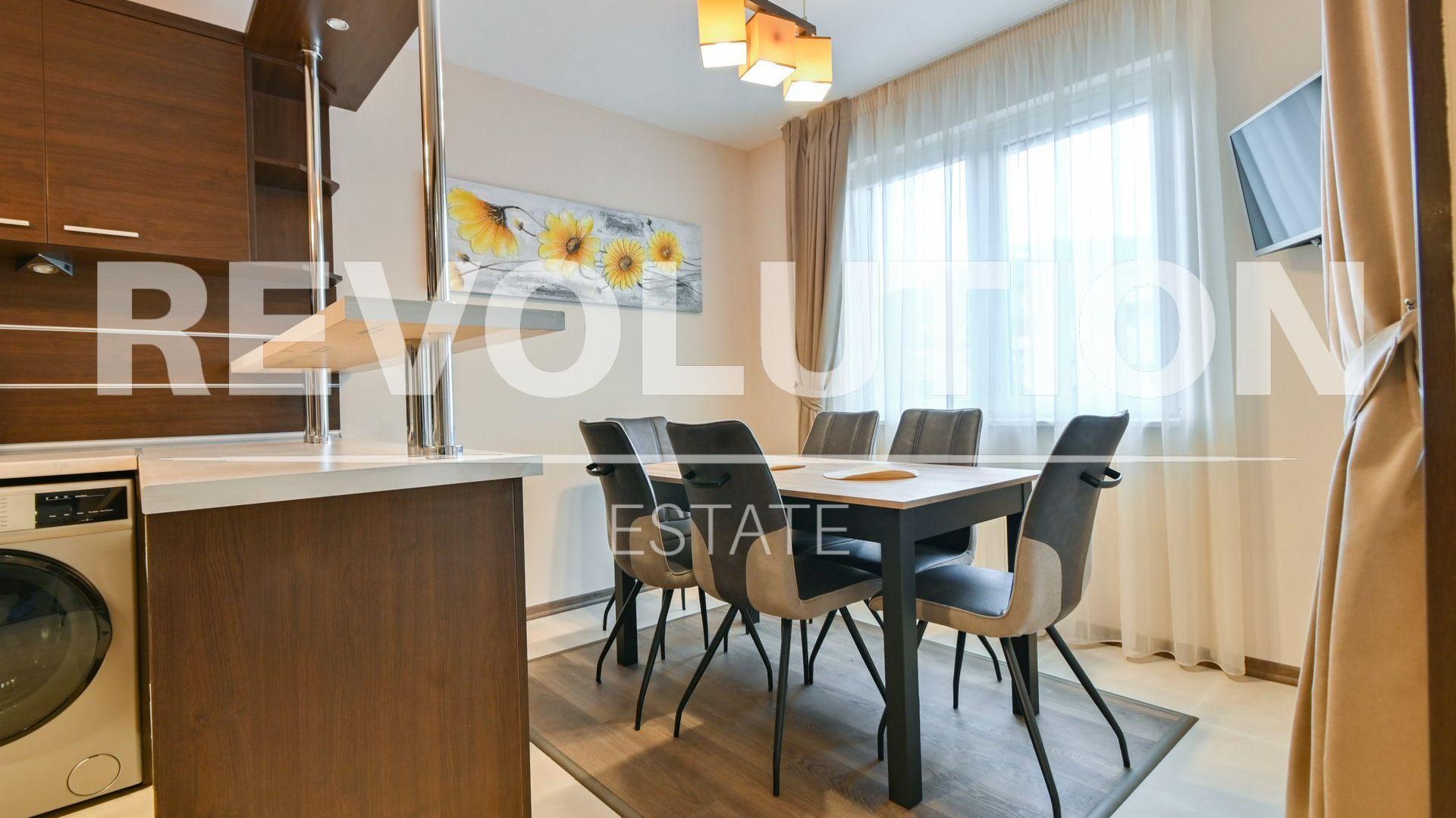 <br/>Просторен тристаен апартамент с елегантно обзавеждане и стилни детайли. Светлите помещения са организирани функционално – две спални, хол с трапезария и голям килер, както и две санитарни помещения. Плюс подземен гараж и слънчева тераса. Комбинация от комфорт и изисканост в сърцето на Манастирски ливади. 🏙️✨