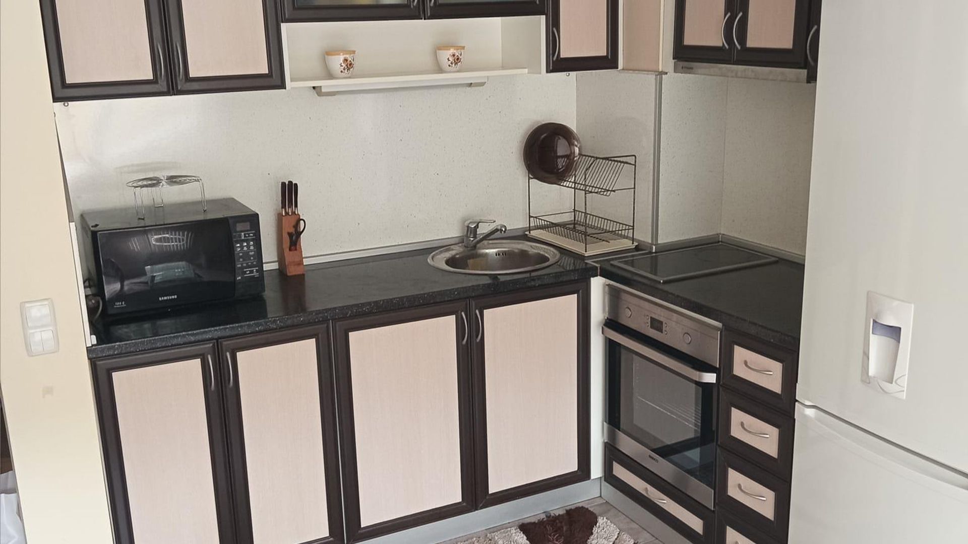 <br/>Просторен тристаен апартамент с отделен кухненски бокс и две спални, изпълнен със светлина и практични решения. Обзаведен с модерни мебели, оборудван с климатик и бърз интернет. Разположен в нова сграда, гарантиращ комфорт и спокойствие.