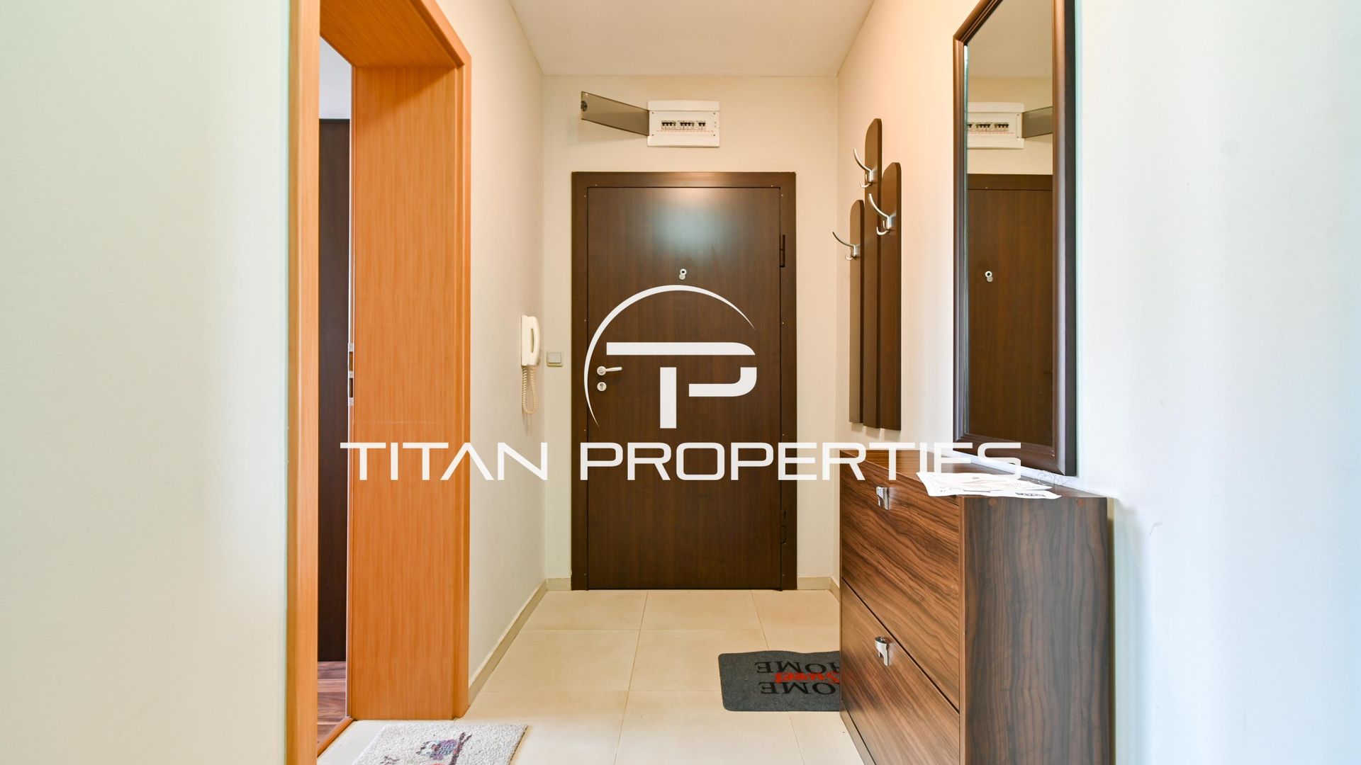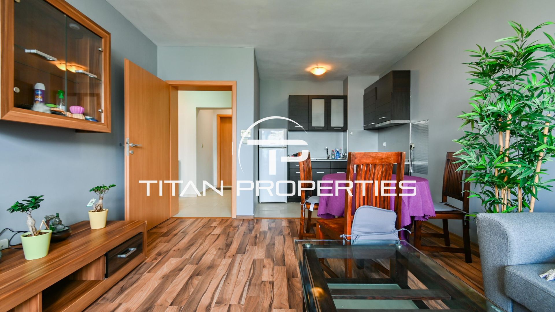 <br/>Разпределението включва хол с кухненски бокс, входно антре, спалня, баня с тоалетна и тераса. Апартаментът е обзаведен, оборудван с газово отопление и климатик за оптимален комфорт.