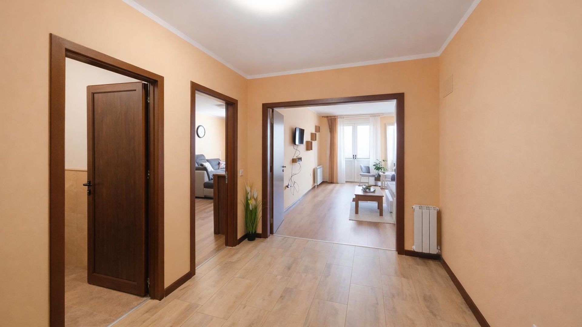 <br/>Жилището с площ 85 кв.м. е разположено на 3-и етаж от общо 8 в нова сграда от 2023 г. С южно изложение помещенията са светли и просторно оформени.